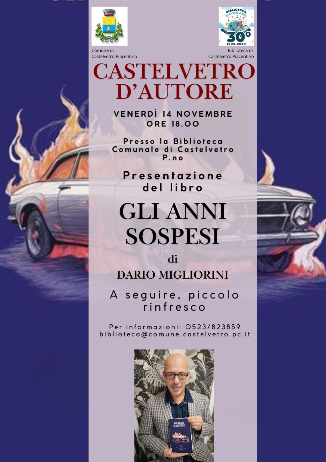 Venerdì 14 novembre, alle ore 18.00, presso la Biblioteca Comunale di Castelvetro, si terrà la presentazione del romanzo Gli anni sospesi di Dario Migliorini.