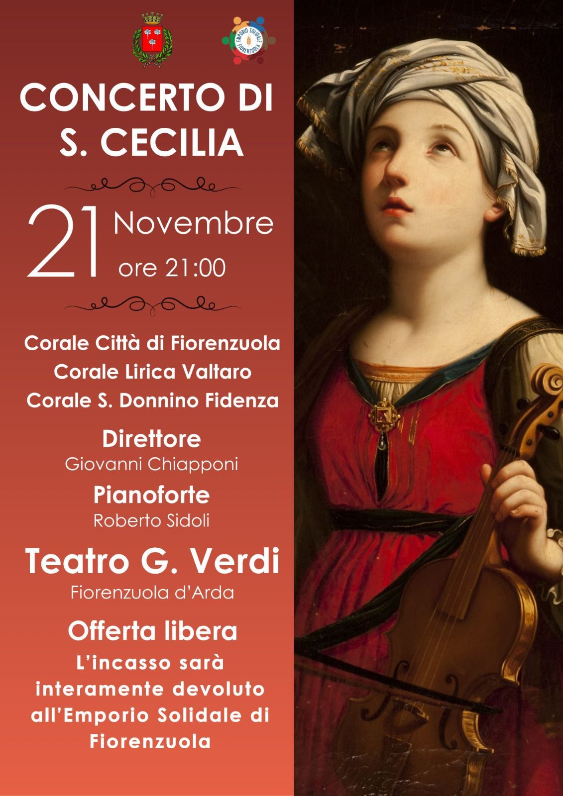 L’ingresso è a offerta libera e l’intero ricavato sarà devoluto all’Emporio Solidale di Fiorenzuola.