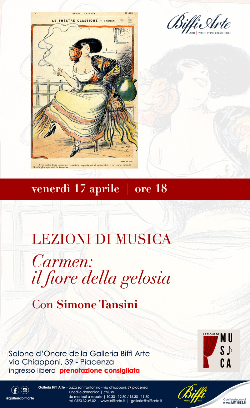 L’incontro, dal titolo "Carmen: il fiore della gelosia", sarà condotto da Simone Tansini e proporrà un approfondimento dedicato all’opera e ai suoi temi.