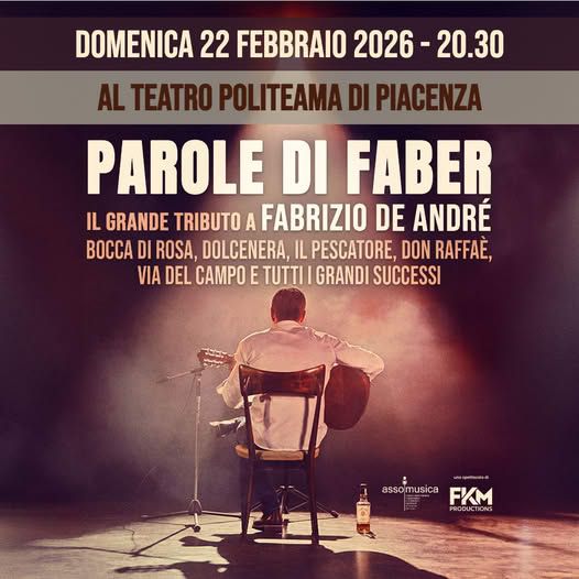 Domenica 22 febbraio, alle ore 20.30, il Teatro Politeama ospita Parole di Faber – Il Grande Tributo a Fabrizio De André.