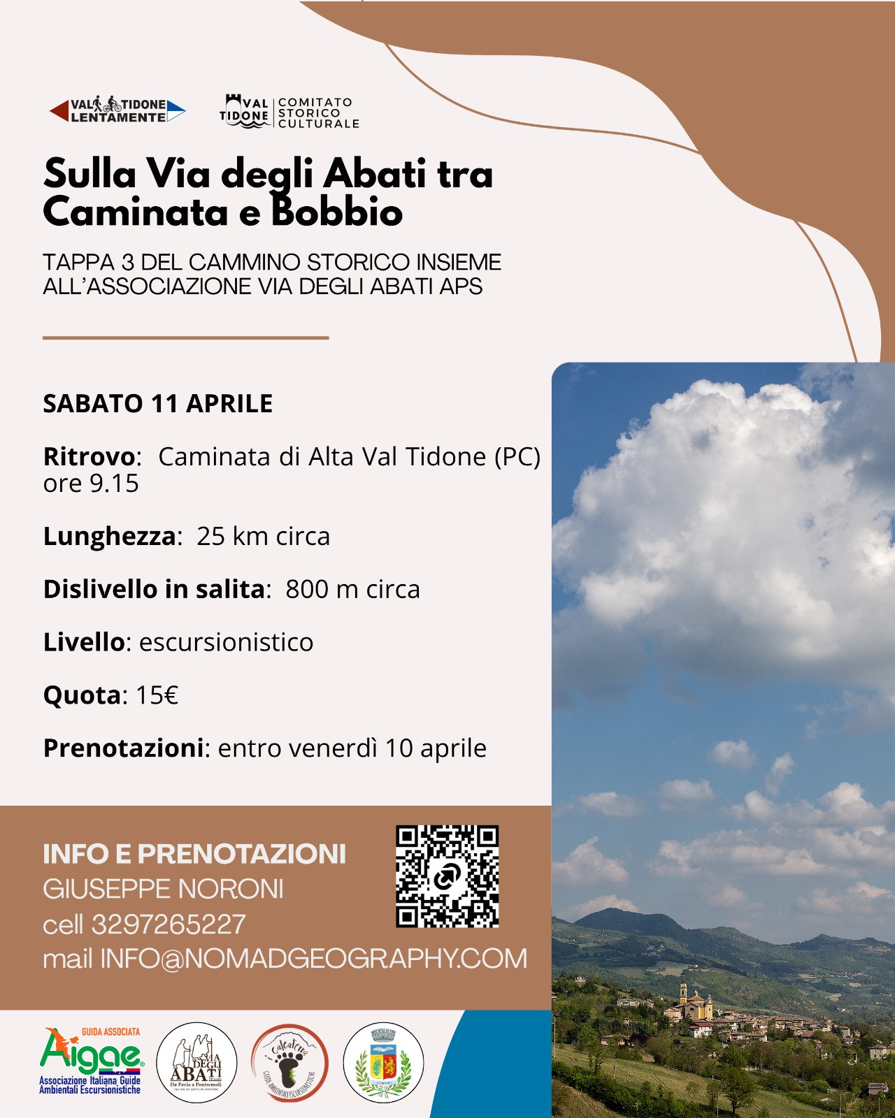 L’escursione è organizzata nell’ambito di "Val Tidone Lentamente 2026", in collaborazione con la Via degli Abati e il Comitato Storico-Culturale Val Tidone.