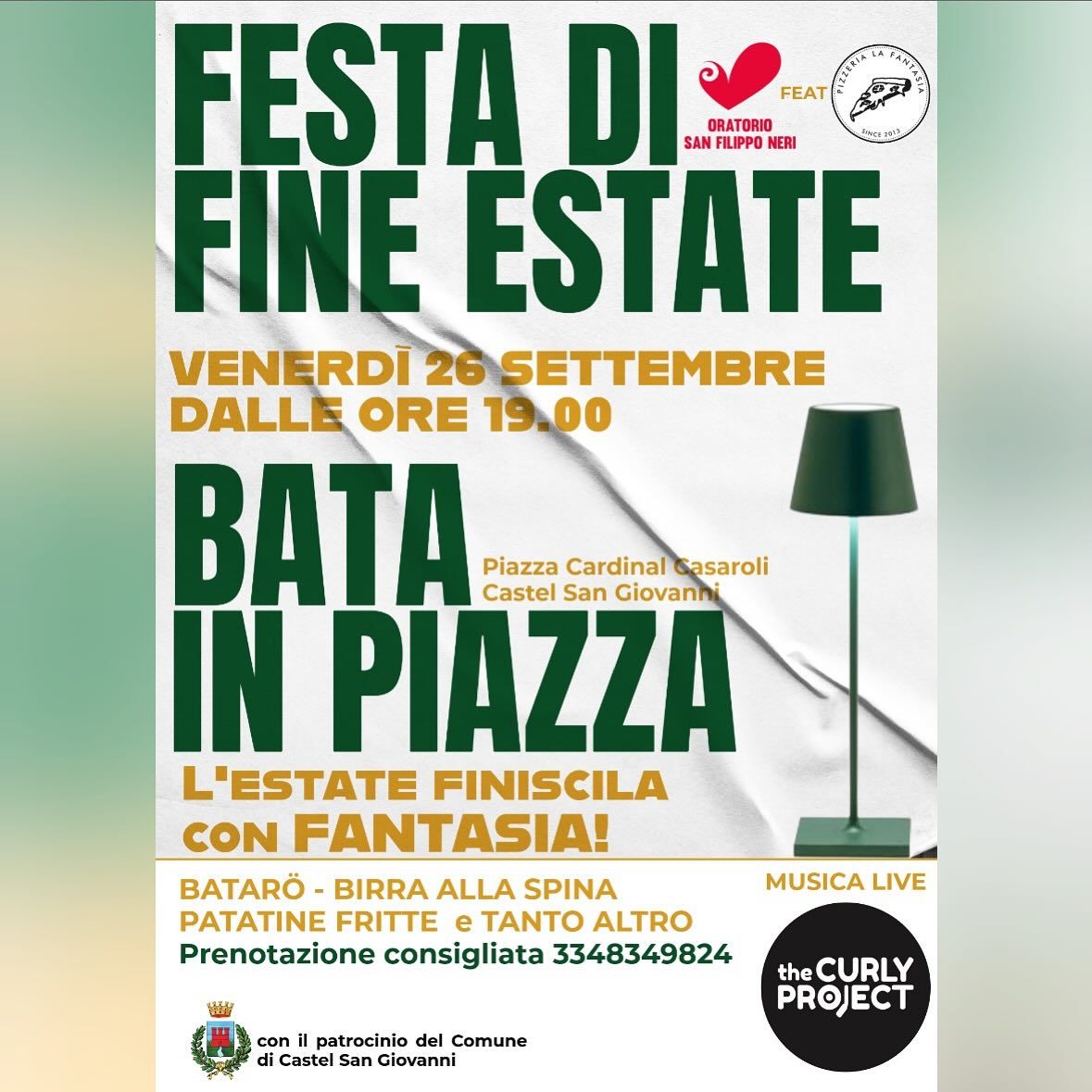 Venerdì 26 settembre, Piazza Cardinal Casaroli a Castel San Giovanni ospita la “Festa di fine estate”, un’occasione per salutare l’estate con buon cibo, musica musica e divertimento.