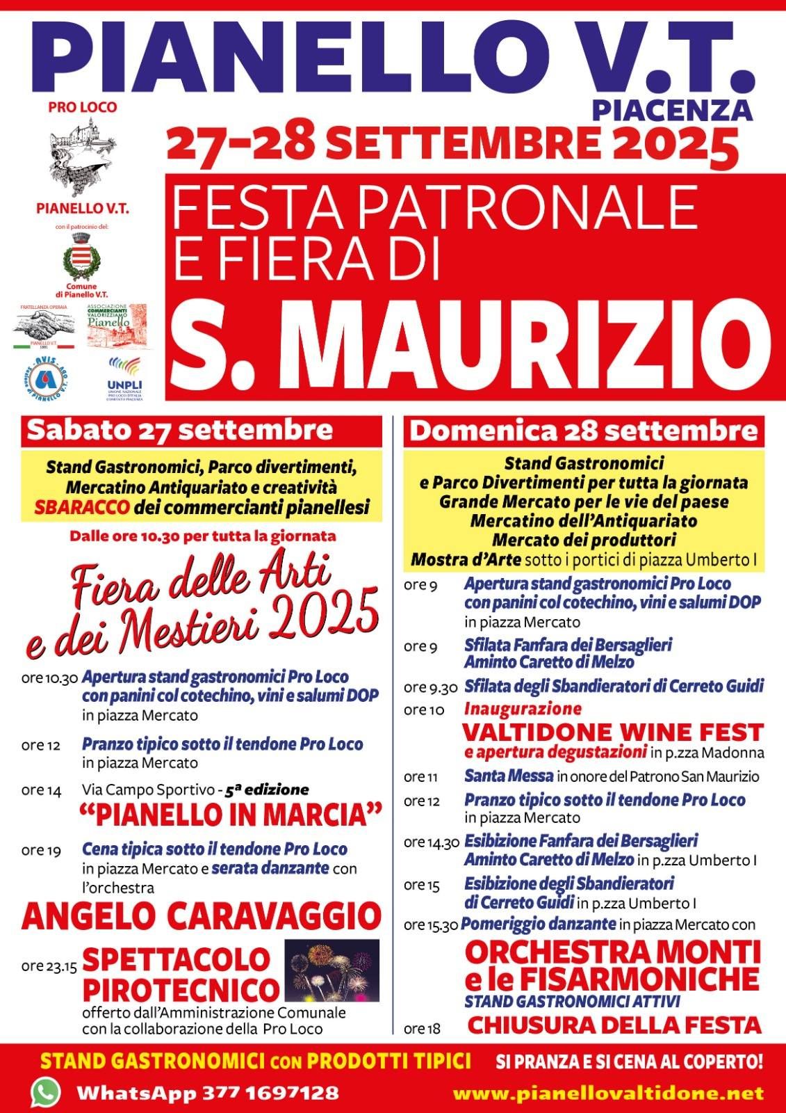 Sabato 27 e domenica 28 settembre Pianello Val Tidone celebra il Patrono San Maurizio con un weekend ricco di tradizione, sapori e intrattenimento.