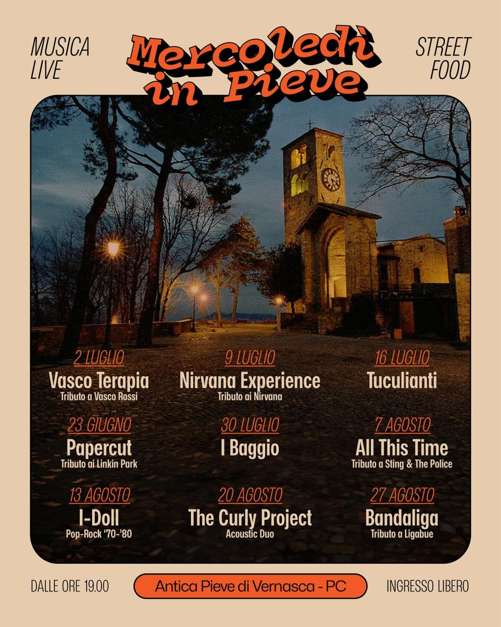 Mercoledì 27 agosto prosegue la rassegna estiva all’Antica Pieve di Vernasca, che ogni mercoledì di luglio e agosto animerà le serate con musica dal vivo e buona cucina.