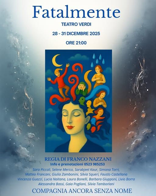 Domenica 28 dicembre, alle ore 21.00, il Teatro Verdi di Fiorenzuola ospita lo spettacolo Fatalmente, portato in scena dalla Compagnia Ancora Senza Nome, con la regia di Franco Nazzani.
