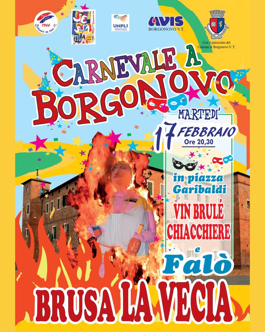 L’appuntamento è in piazza Garibaldi, alle ore 20.30, per il tradizionale e suggestivo falò “Brusa la Vecia”, che si accenderà davanti alla Rocca di Borgonovo Val Tidone.