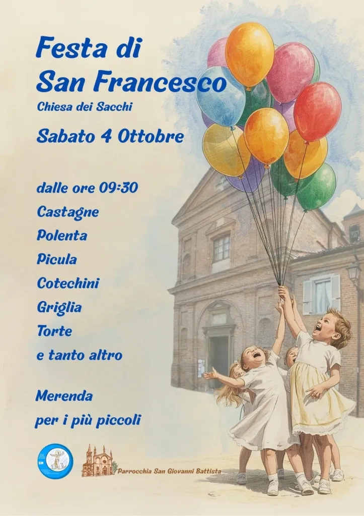 Domenica 4 ottobre, presso la Chiesa dei Sacchi, l’Oratorio San Filippo Neri organizza la tradizionale Festa di San Francesco, che si svolge in concomitanza con la ricorrenza dedicata al santo.