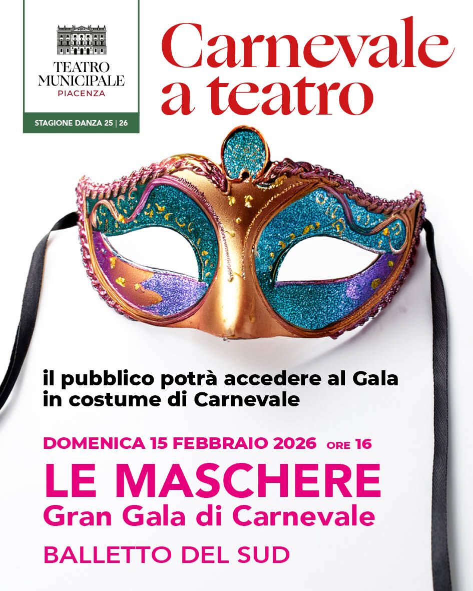 Domenica 15 febbraio, alle ore 16.00, il Teatro Municipale celebra il Carnevale con un appuntamento speciale della Stagione Danza: il Gran Gala di Danza “Le Maschere” della compagnia Balletto del Sud.