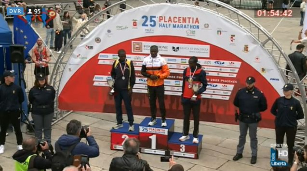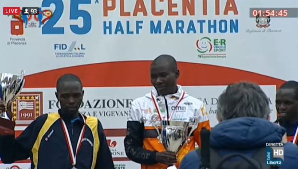 E’ il kenyota Dickson Nyakundi il vincitore della 25esima edizione della Placentia Half Marathon, con il tempo di 1.01.15. Al secondo posto si è classificato Hosea Kisorio Kimeli in in 1.03.04, mentre al terzo posto ha chiuso Edwin Kiptoo in 1.03.49.