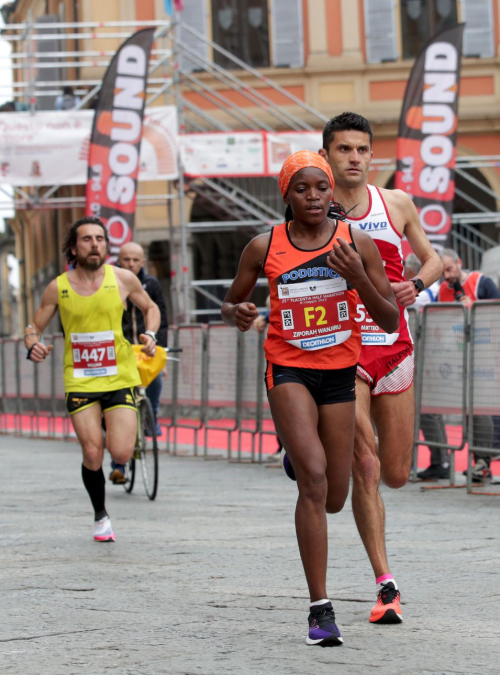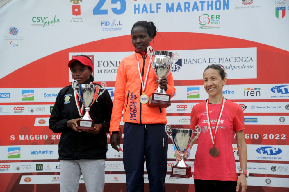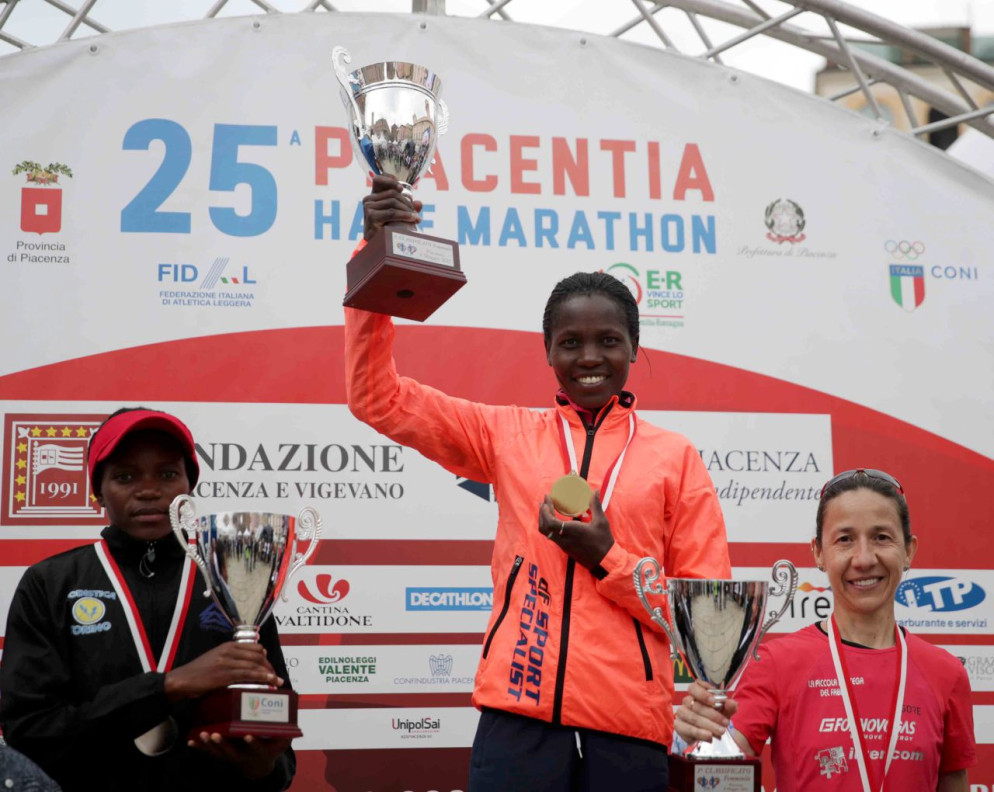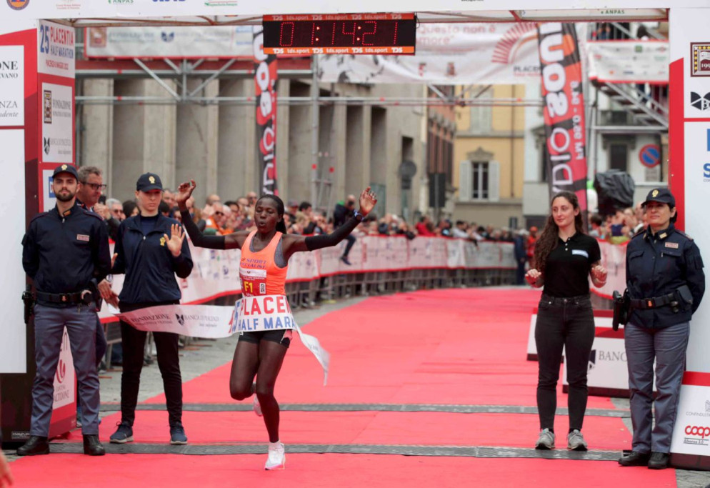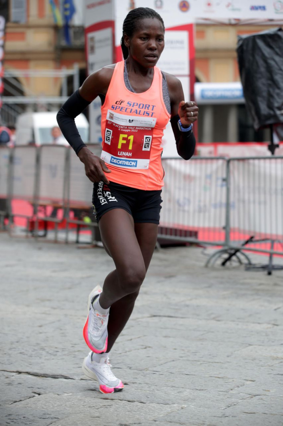 Lenah Jerotich è la prima classificata tar le donne con il tempo di 1.14.21, seguita da Ziporah Kingori.