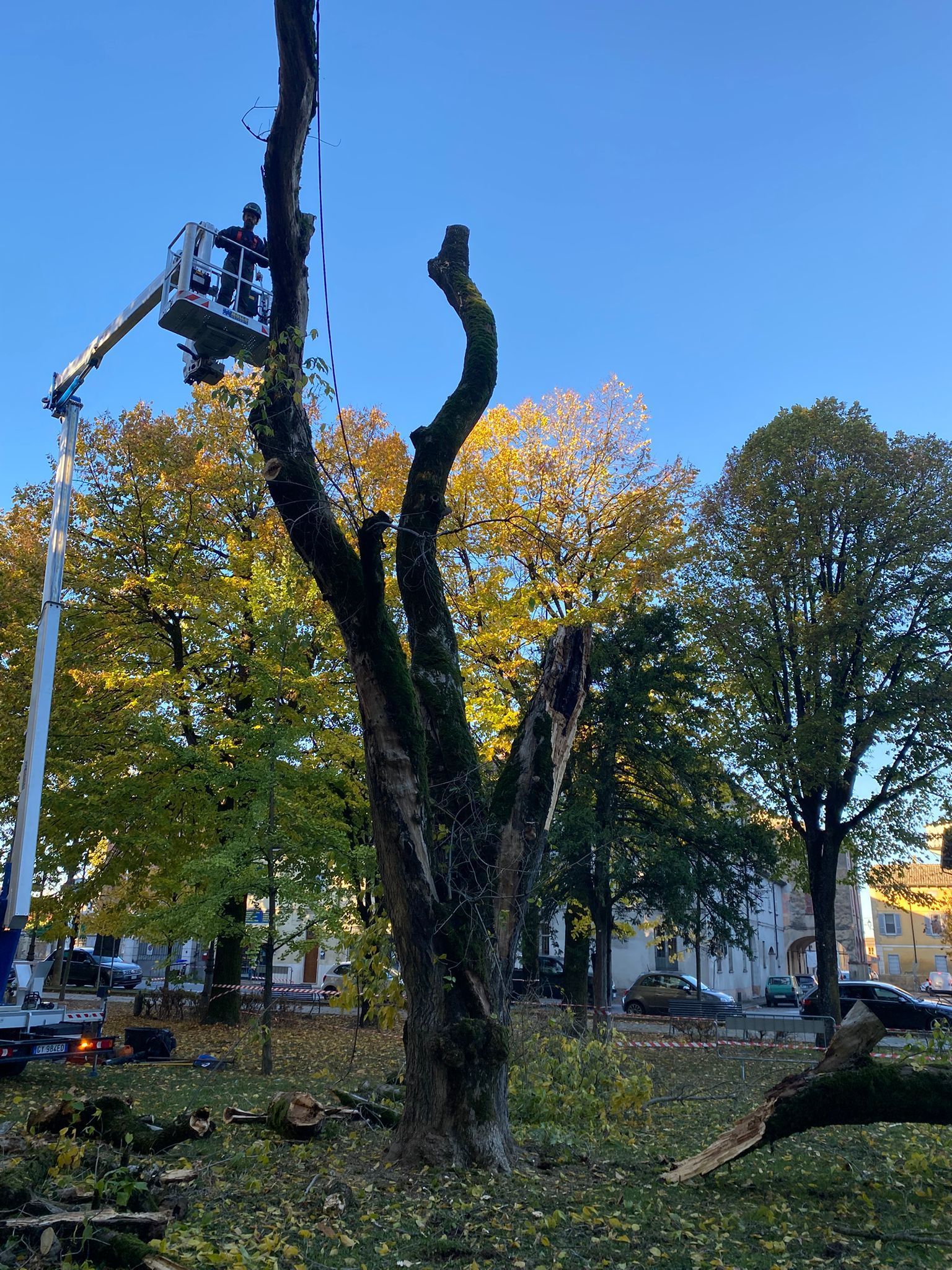 «L’area è vincolata dalla Soprintendenza - spiega Rancan - a cui sarà inviata una relazione tecnica motivando la necessità di procedere con urgenza ad abbattere un acero americano (Acer negundo) pericolante nei pressi del passaggio pedonale delle scuole elementari, come su indicazioni dettate da una professionista, l’agronomo specialista in fitopatologia Emanuela Torrigiani. Si procederà poi con la rimozione del secco, eliminando tutti i rami morti, rimasti appesi, a rischio caduta». Le operazioni proseguiranno nei prossimi giorni per concludersi in un paio di settimane, è stato riferito. Le zone dove gli operai andranno ad agire sono: il cimitero di Cortemaggiore, via Galluzzi, via Mattei e la frazione Chiavenna Landi.