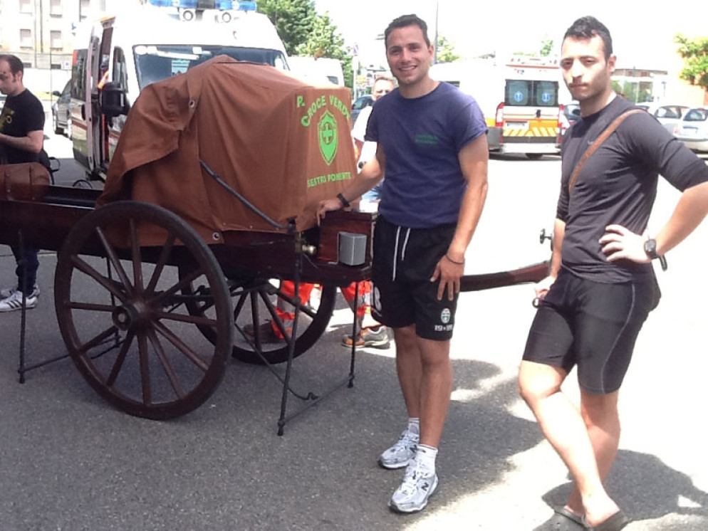 Approda a Piacenza la barella storica a mano dell'Anpas Genova Sestri Ponente