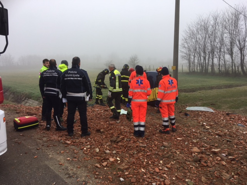 Perde il controllo della propria auto e finisce in un campo ribaltandosi. E’ accaduto stamattina, 22 febbraio, in via Opiazzi a Castelvetro Piacentino. Una donna di 47 anni alla guida di una Fiat Punto è uscita di strada improvvisamente e per motivi da chiarire. La vettura si è ribaltata su se stessa e la conducente è rimasta incastrata nell’abitacolo. La donna è stata estratta dalle lamiere dai vigili del fuoco di Fiorenzuola. Sul posto, per i rilievi di legge, è intervenuta la polizia dell’Unione bassa Val D’Arda fiume Po. La 47enne, residente a Castelvetro, è stata trasportata all’ospedale di Cremona in condizioni serie ma non sarebbe in pericolo di vita.