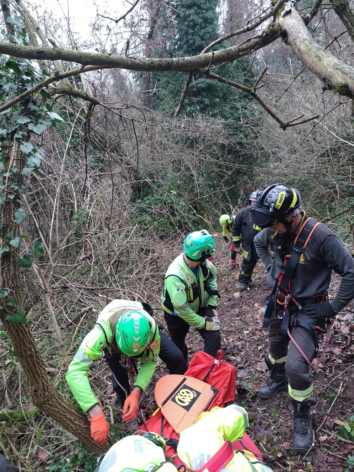 L'operazione è stata complicata anche per la fitta vegetazione del bosco.