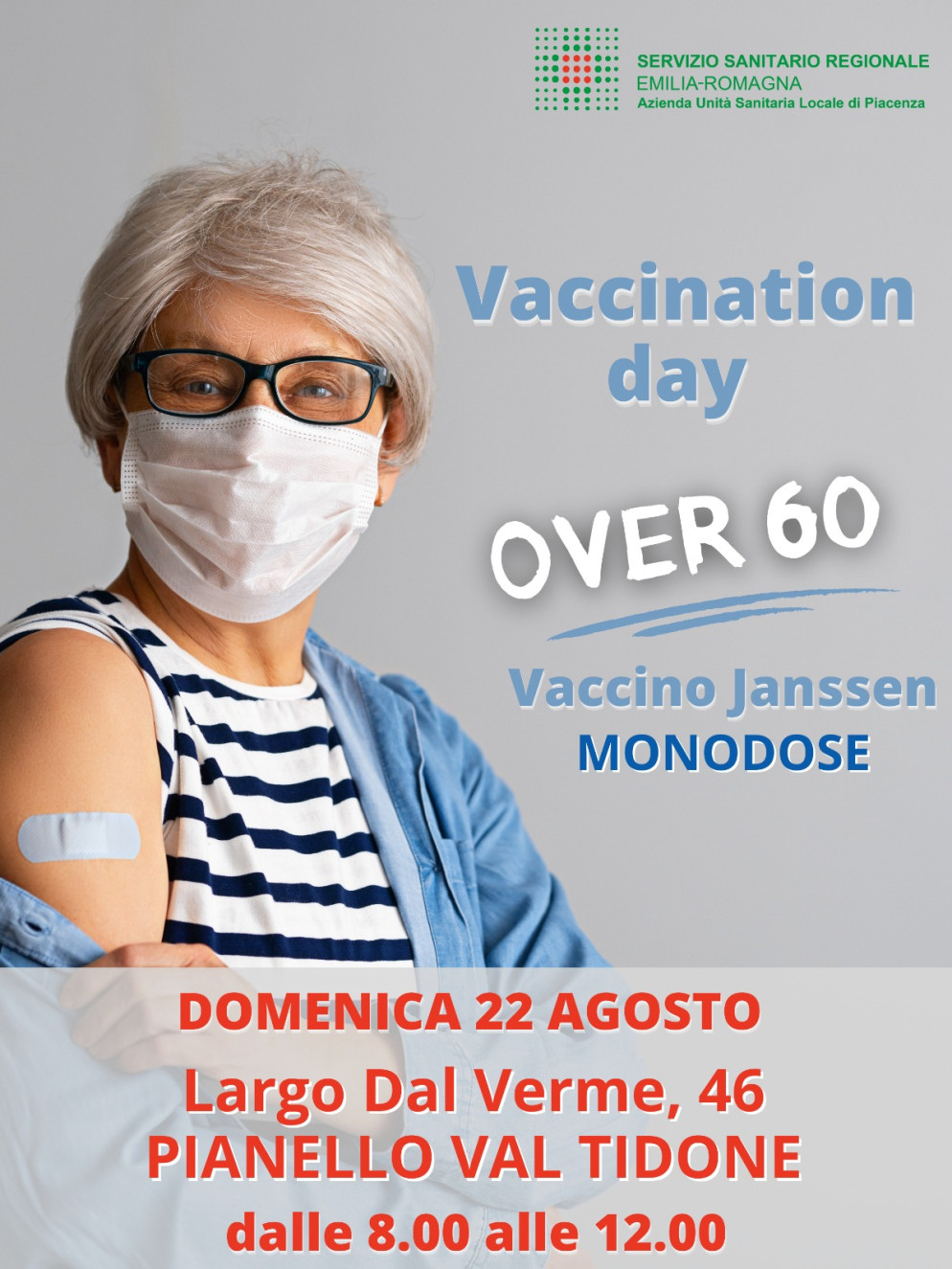 L’opportunità è riservata a chi ha già compiuto sessant’anni e ancora non ha ricevuto la dose di vaccino, che potrà approfittare della presenza di medici e infermieri per farsi somministrare il monodose Janssen di Johnson&Johnson.