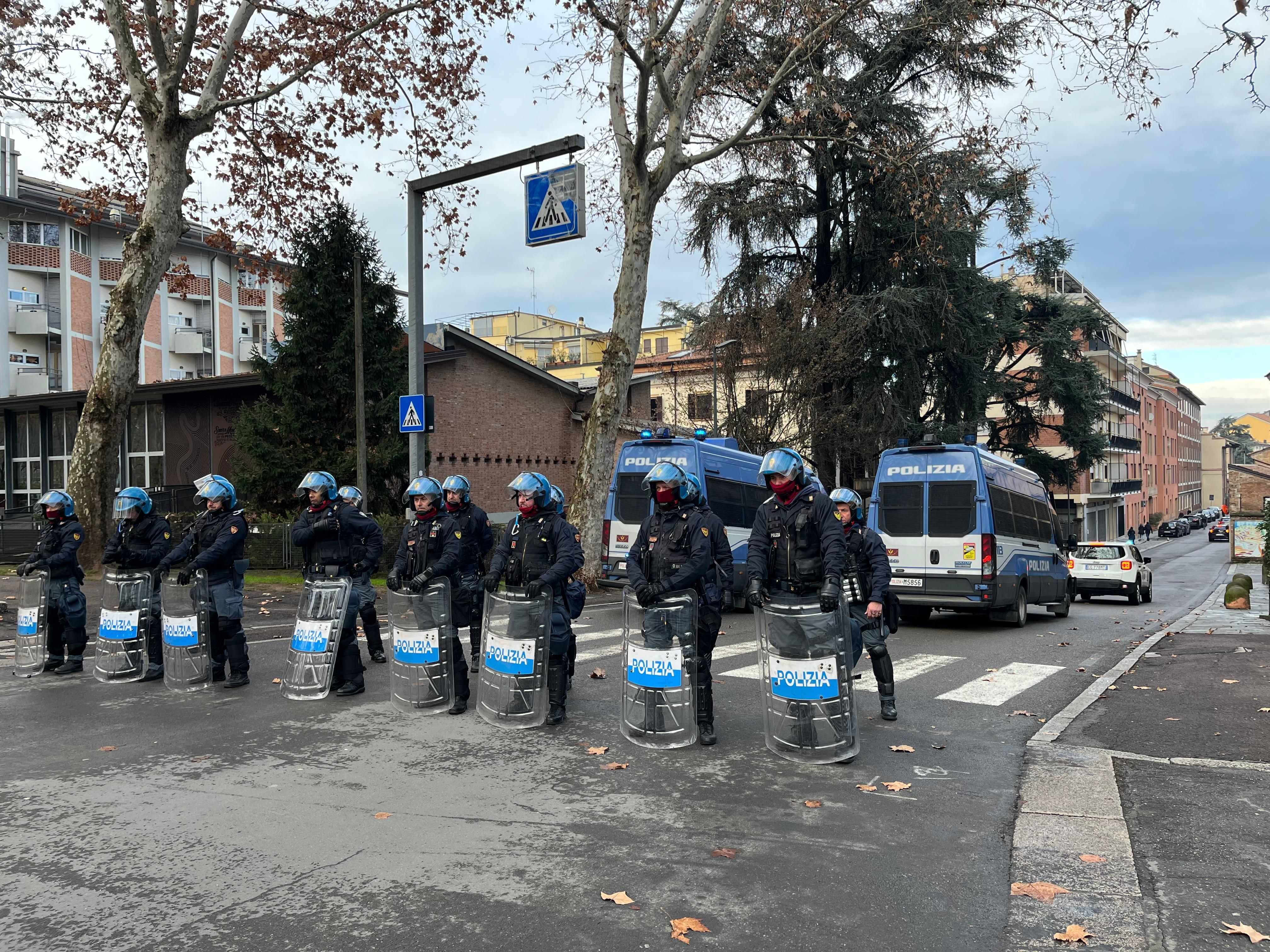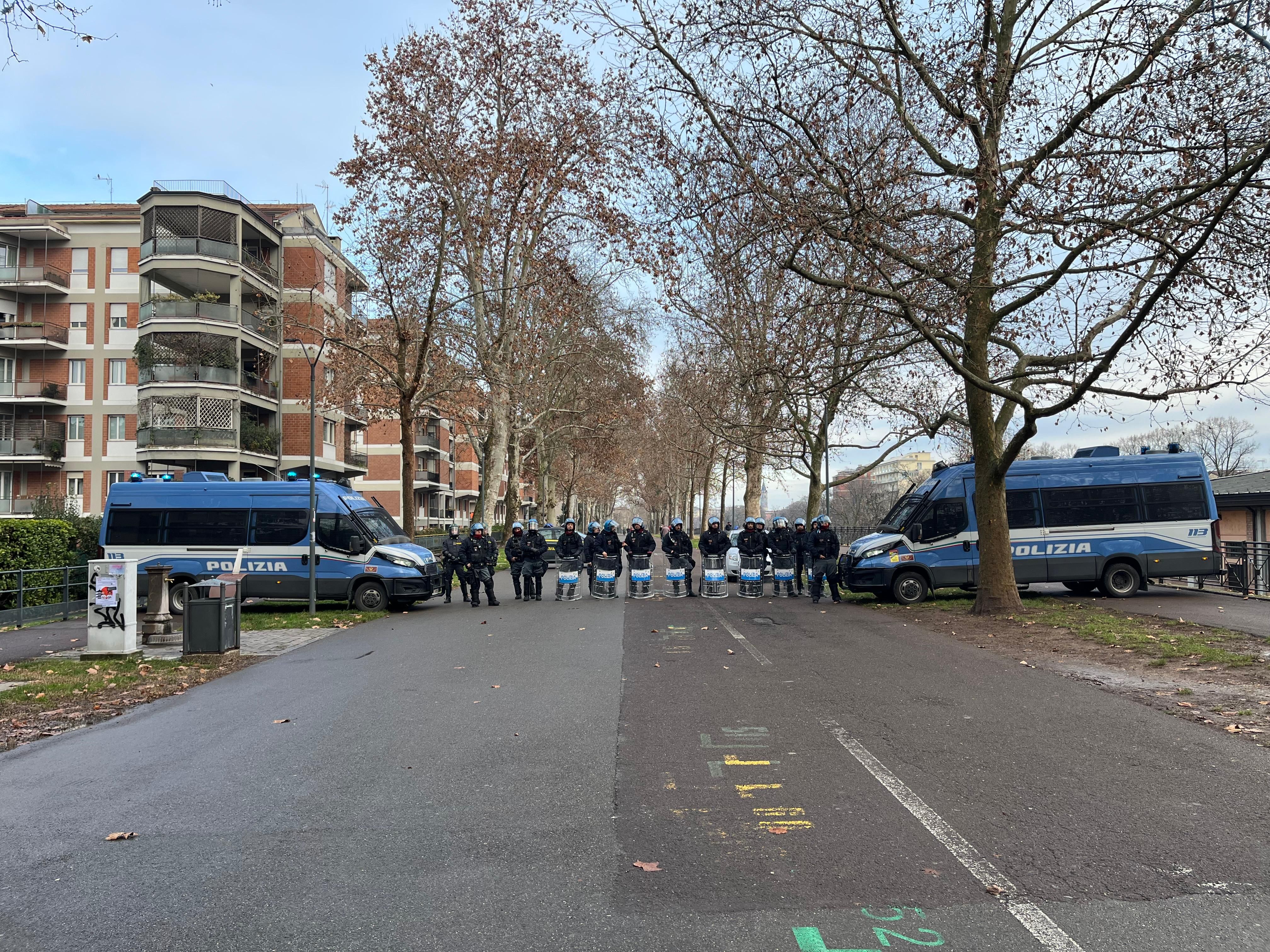 La manifestazione è stata scortata dalle forze dell’ordine: 200 uomini del reparto celere della polizia di Stato con una decina di camionette, oltre a Digos e polizia locale. Imponente il dispositivo di sicurezza predisposto dalle autorità, con l’obiettivo di evitare qualsiasi contatto tra i due schieramenti. Il timore principale, come spesso accade in situazioni di questo tipo, riguarda la possibile presenza dei cosiddetti “cani sciolti”, soggetti estranei alle manifestazioni ufficiali che potrebbero tentare azioni isolate.