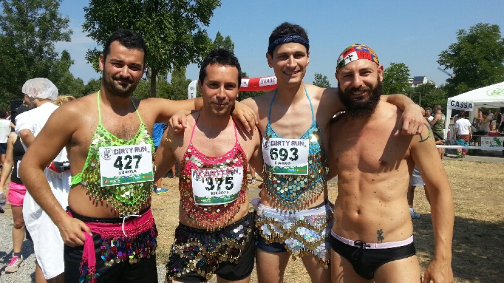 Una corsa fatta di pozzanghere, montagne di terra, scivoli acquatici, schiuma e fango. Per la prima volta Piacenza ospita la Dirty Run, ovvero la “corsa sporca” dove centinaia di partecipanti si sfidano per dieci chilometri tra sentieri scoscesi, boschi e piste assolate bersagliati da ostacoli di ogni tipo. I quasi ottocento iscritti, molti dei quali travestiti con costumi a dir poco bizzarri, sono partiti questo pomeriggio dal parco di Montecucco e dopo essere transitati nel parco della Galleana sono tornati alla Besurica accolti da un megascivolo insaponato.