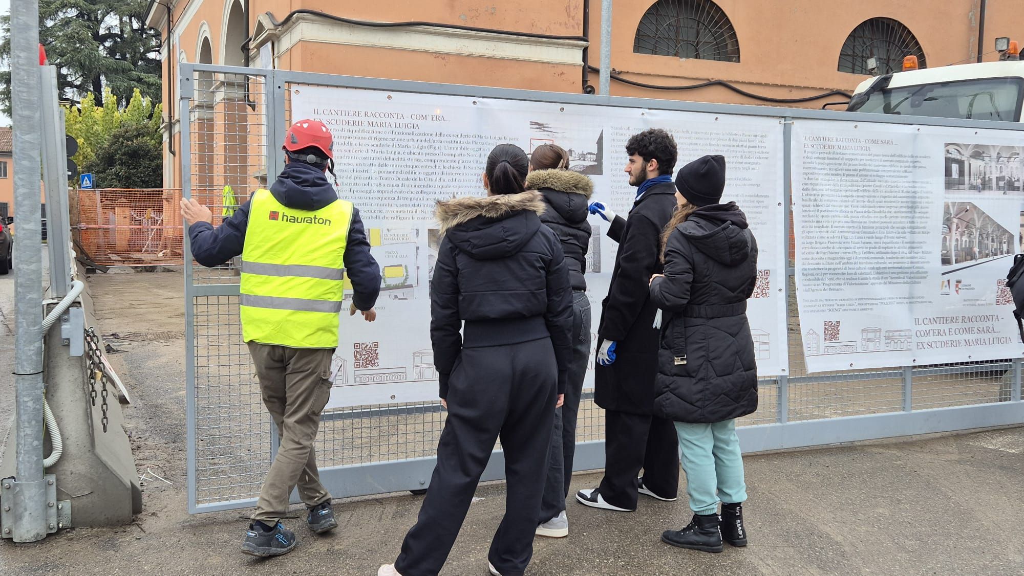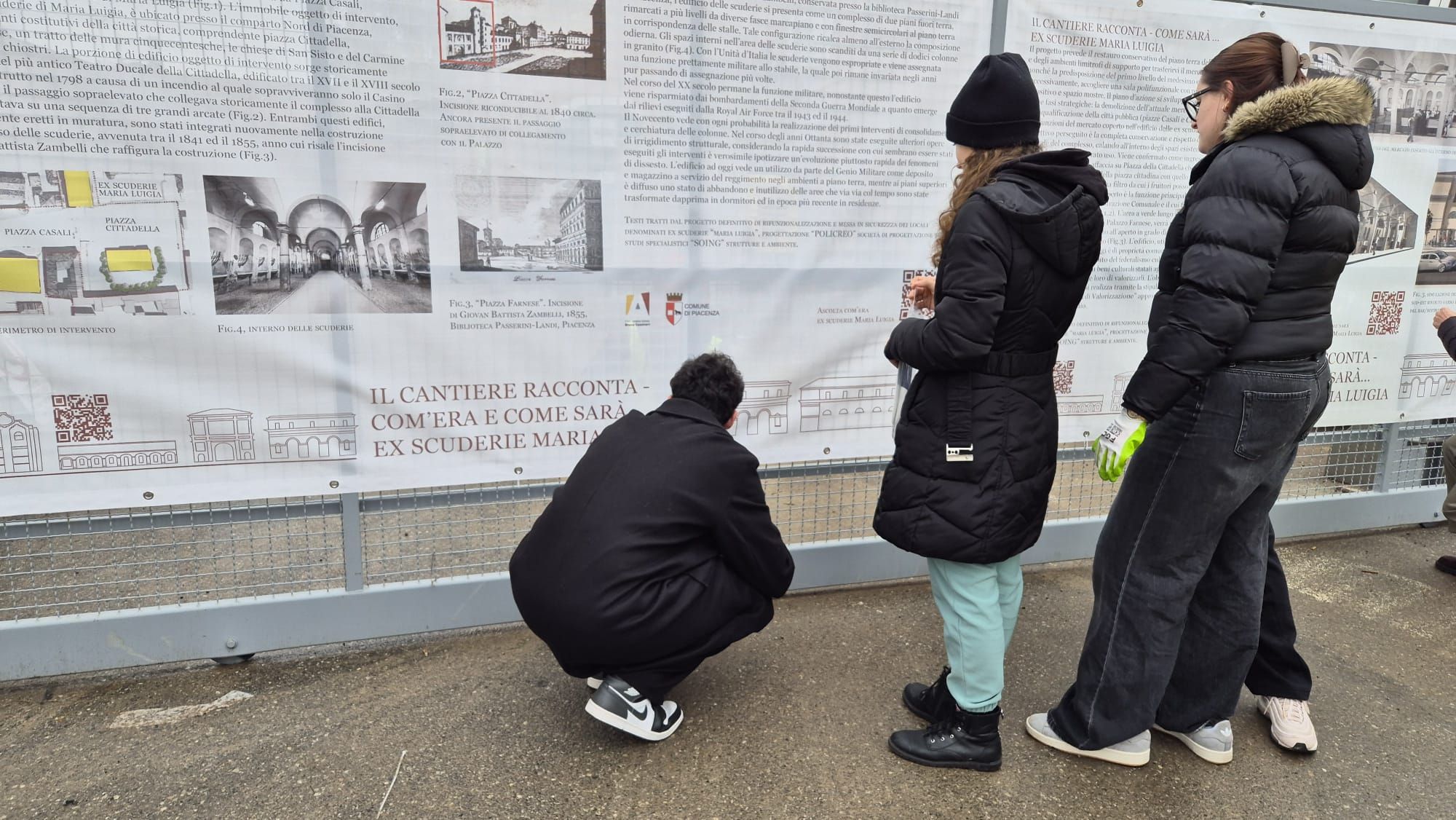 Non è una sorpresa, ma il ritrovamento dei reperti dell’antico teatro farnesiano sotto le scuderie ducali qualche brivido lo dà. E’ una delle notizie emerse nel corso dei lavori. Ieri intanto gli studenti della quinta Grafica B del liceo Cassinari, accompagnati dal docente Roberto Dapoto, hanno applicato alla recinzione del cantiere di piazza Cittadella i pannelli con il loro lavoro.