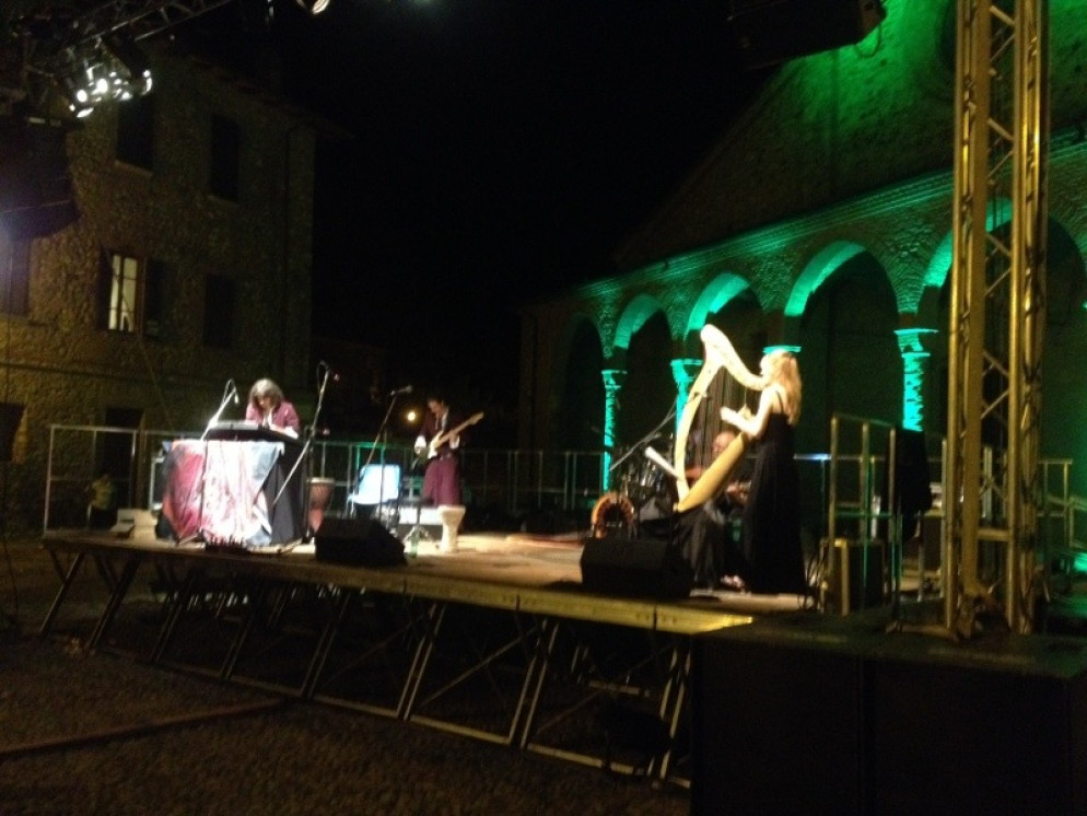 Nella splendida scenografia di piazza San Colombano, il santo dell’Isola di Smeraldo, il concerto, organizzato da Comune di Bobbio con la direzione artistica di Fedro scs, ha rivisitato sonorità antiche e suggestive in chiave del tutto inedita e moderna; l’ensamble vicentino guidato dal maestro Michele Mastrotto ha regalato al pubblico numeroso un assaggio di medioevale-elettronico, frutto di un approfondito lavoro di studio e ricerca, colorato da splendidi costumi di scena.