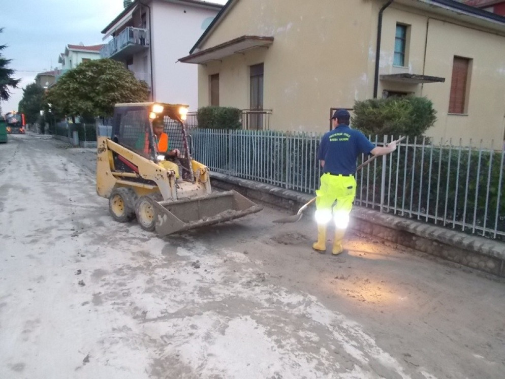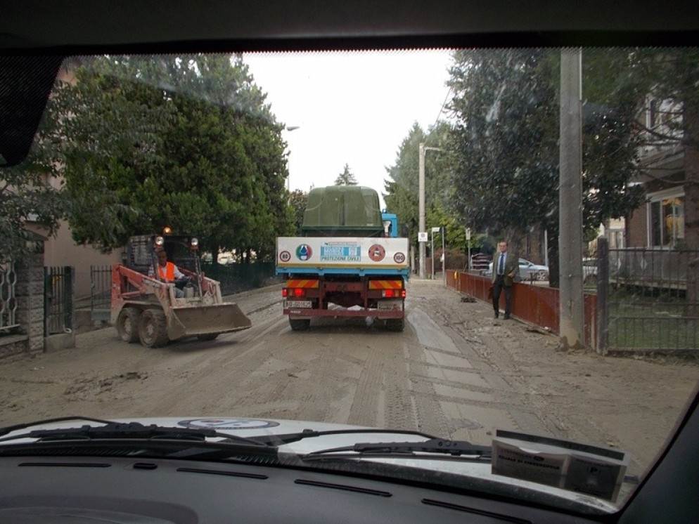 Anche oggi erano presenti gli “angeli del fango”, costituiti da gruppi di giovanissimi che, armati di pale, andavano cercando cumuli di fango da rimuovere.
