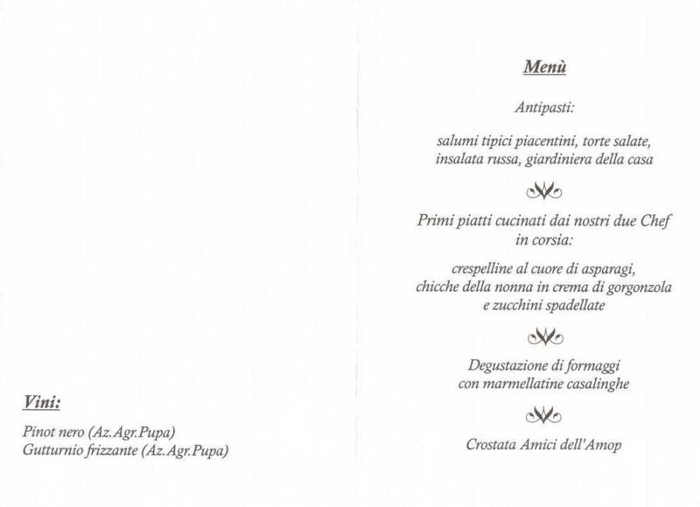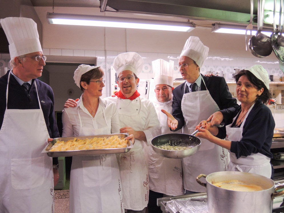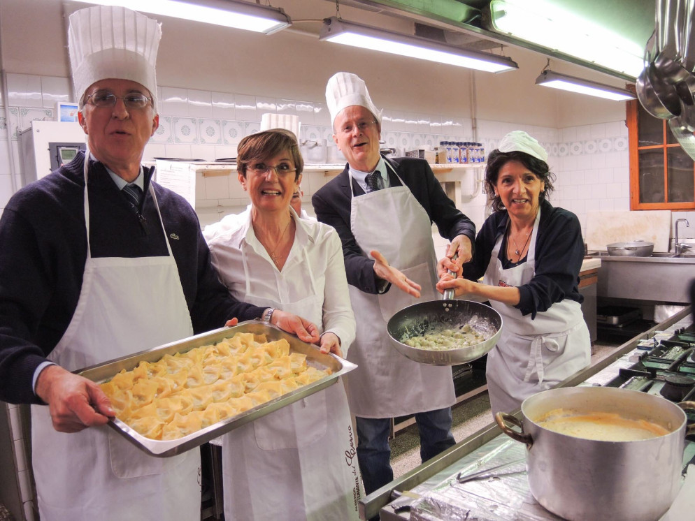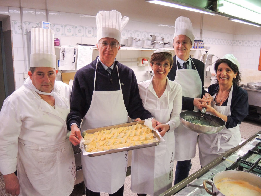 Dalle corsie ai fornelli per dare un bell’esempio di solidarietà. L’oncologo Luigi Cavanna e il gastroenterologo Fabio Fornari per una sera si sono improvvisati Chef nelle cucine del ristorante Il cervo di Agazzano. Si sono presentati duecento ospiti alla cena benefica il cui ricavato è stato devoluto all’associazione malati oncologici Amop a sostegno di due borse di studio destinate a giovani infermieri. La prima edizione di “Chef per una sera”, simpaticamente presentata dai medici Patrizio Capelli e Giuseppe Crippa, tra prove culinarie teoriche e pratiche ha messo a dura prova la giuria presieduta dal primario Marco Zannini che ha sentenziato un ex equo per le chicche della nonna preparate da Cavanna con l’assistenza della caposala Maria Rosa Cordani e le crespelle sfornate da Fornari con l’aiuto dalla caposala Delia Brizzolara.