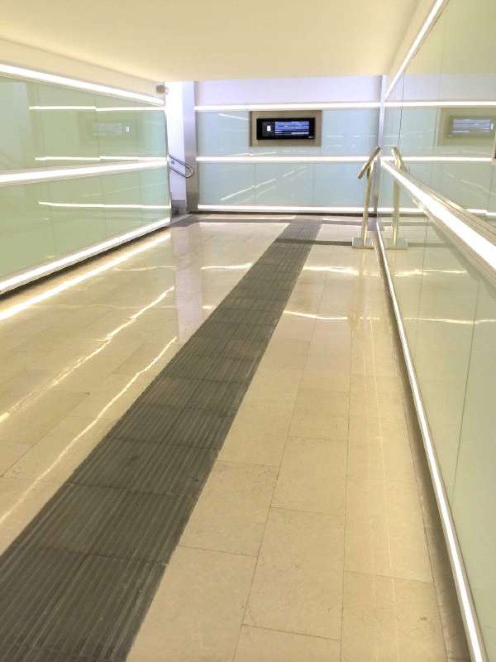 L’intervento di riqualificazione – portato avanti dalla società Centostazioni per 2,3 milioni di euro – è terminato nei giorni scorsi e il colpo d’occhio, specialmente se confrontato con la situazione precedente, è evidente. Al posto dei muri sporchi, ora ci sono pareti di vetro e materiale trasparente illuminate da strisce al led che rendono luminoso il corridoio. E poi ancora: pavimento in marmo, nuovi altoparlanti, nuovi corrimano, monitor elettronici con l’indicazione del treno in arrivo in quel momento su ogni binario ma anche di tutti gli altri convogli in partenza, fino ad obliteratrici colorate di verde, bianco e rosso. Altri monitor con filmati e news sono stati posizionati anche sulle banchine per chi attende di salire sul treno. Particolare attenzione, poi, è stata riservata ai non vedenti, con una mappa in braille e altre indicazioni tattili sui corrimano. Infine, i marciapiedi sono stati rialzati di 55 centimetri per allinearli all’altezza del treno.