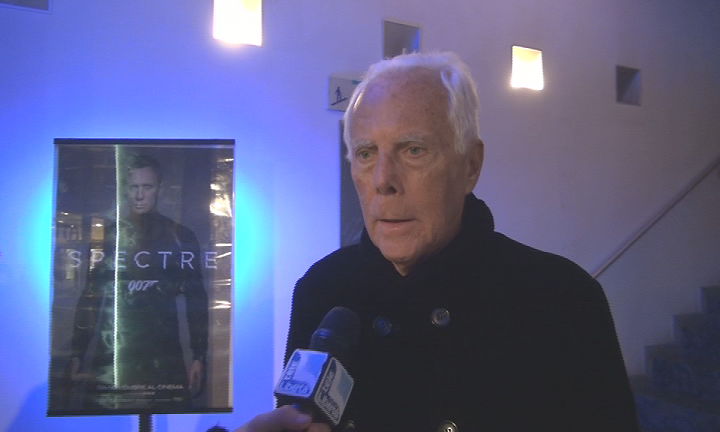 Giorgio Armani ha scelto la “sua” Piacenza per vedere “Spectre”, uscito nelle sale cinematografiche nei giorni scorsi. Oggi pomeriggio, intorno alle 16, Armani ha fatto una breve passeggiata in corso Vittorio Emanuele e poi ha raggiunto il cinema Iris per godersi il 24esimo film della saga di James Bond. Con la semplicità che lo contraddistingue, nonostante sia lo stilista più conosciuto al mondo, si è concesso alle telecamere di Telelibertà per una breve chiacchierata.