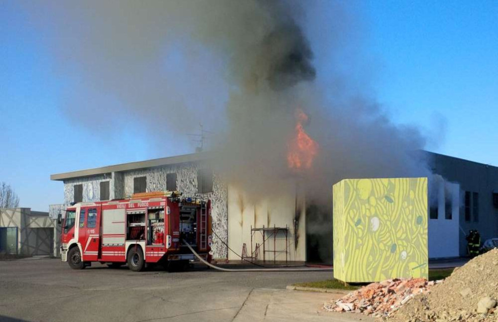 Furioso incendio in un salumificio a Borgonovo, fiamme alte nel cielo