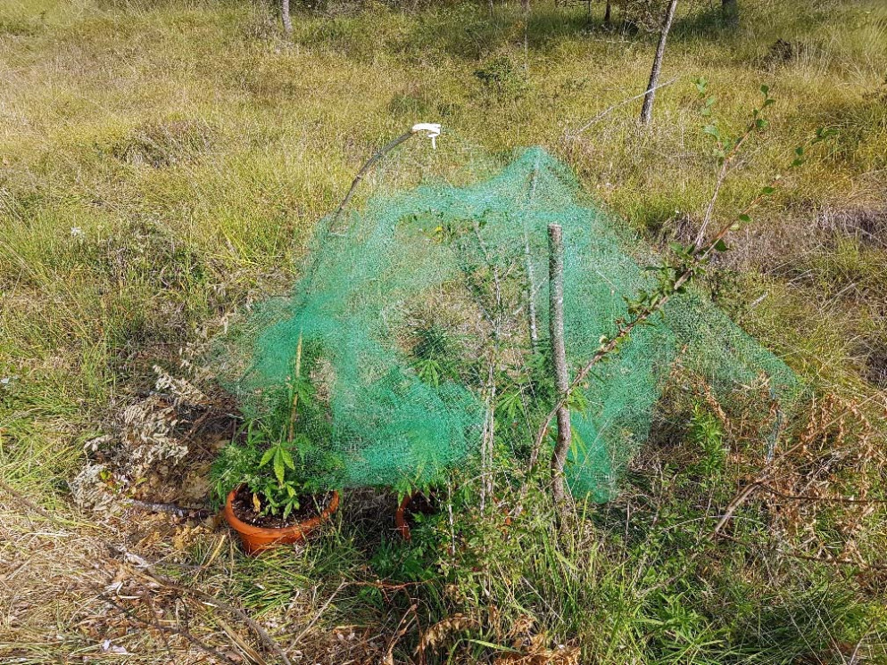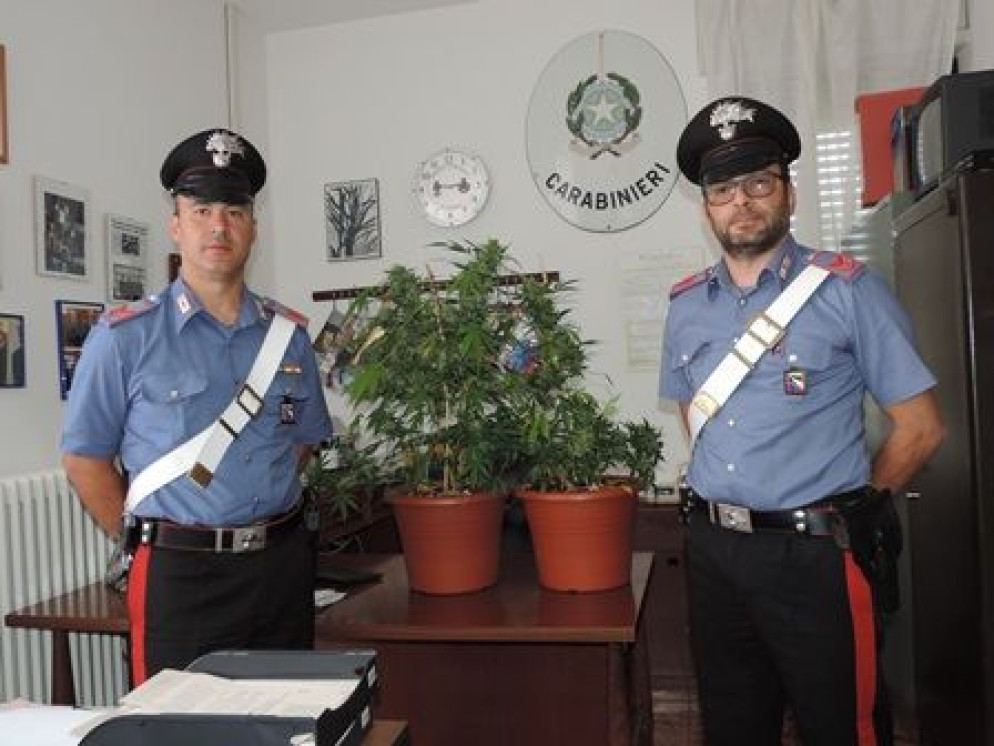 Durante un normale servizio di pattugliamento del territorio, mentre percorrevano in auto la strada per Centenaro, i militari hanno notato una recinzione all’interno della vegetazione, poco distante dalla carreggiata. Insospettiti si sono avvicinati e hanno trovato, occultati dietro al grossolano tentativo di mimetizzazione, due vasi in plastica contenenti altrettante piante di marijuana di qualità a crescita e fioritura rapida, alte dai 50 ai 70 centimetri.
