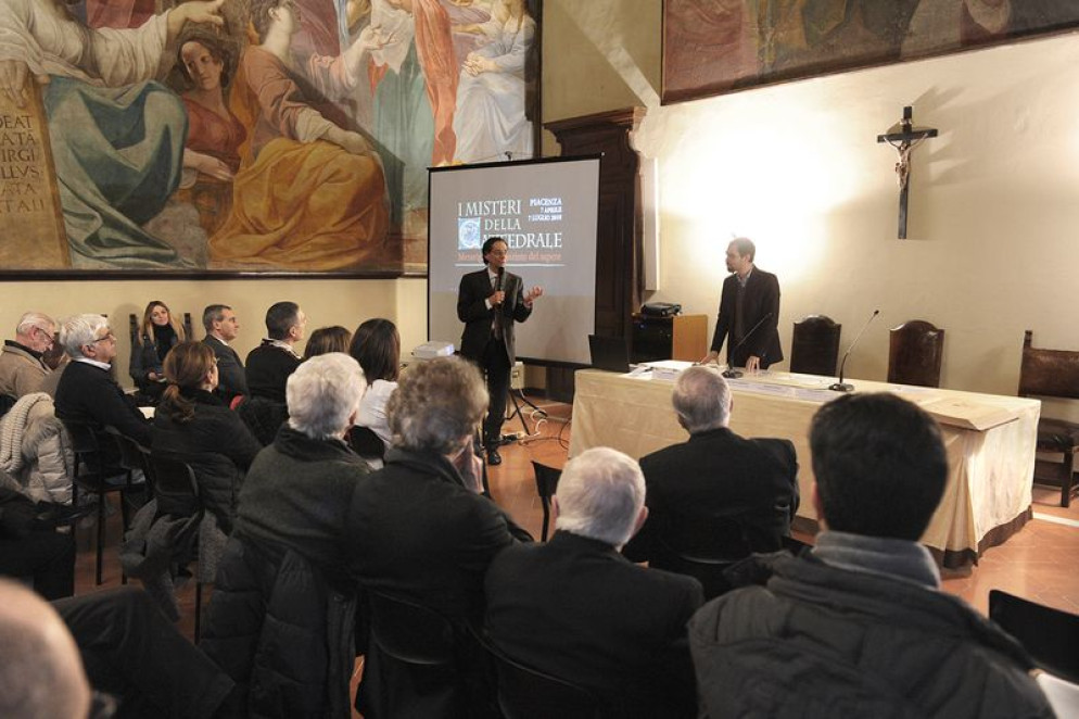 Si potrà anche accedere all’interno del campanile per poterne ammirare dal basso l’imponente struttura lignea e accedere a una stanza segreta dove sono ancora conservati gli ingranaggi dell’orologio anticamente posto in facciata. “Un progetto che intende esprimere una forte valenza religiosa con itinerari di profonda spiritualità – ha sottolineato il Vescovo, Monsignor Gianni Ambrosio. “L’ufficio diocesano per i beni culturali della Diocesi di Piacenza-Bobbio – ha evidenziato il suo direttore Manuel Ferrari – con la mostra porta avanti l’opera di valorizzazione della Cattedrale.