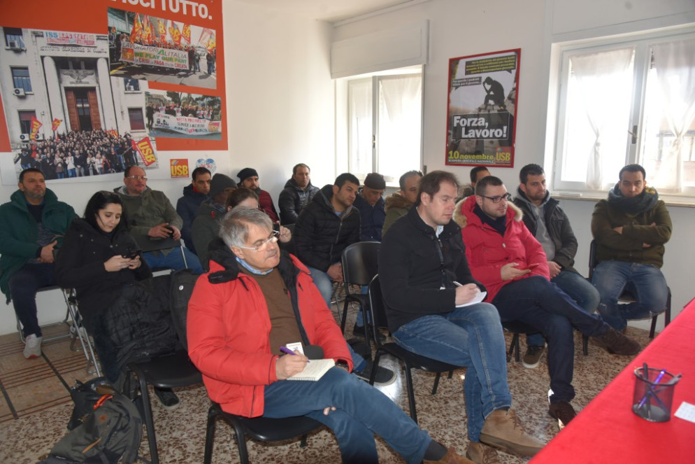Alla conferenza stampa di giovedì 24 gennaio nella sede del sindacato in via Colombo non solo erano presenti i referenti locali Roberto Montanari e Riad Zaghdane, ma anche Aboubakar Soumahoro, 38 anni, italiano nato in Costa d’Avorio, sociologo e sindacalista del coordinamento dei lavoratori agricoli Usb. I 12 lavoratori erano invece presenti tramite video chiamata.