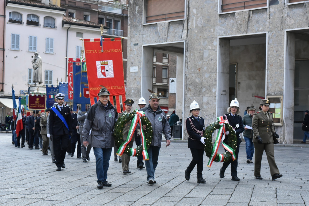 , l’alzabandiera e l’inno di Mameli e la deposizione delle corone d’alloro in piazza Cavalli, si è tenuta la commemorazione organizzata dall’associazione delle famiglie dei caduti e dispersi in guerra. Alla presenza di istituzioni, autorità civili e militari, sono state consegnate le croci al merito di guerra alla memoria del soldato Vincenzo Paradiso e del carabiniereGiuseppe Bonelli