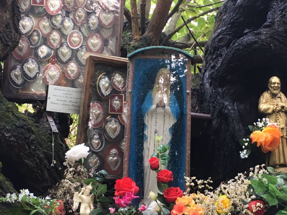 “Speriamo che non si sia trattato di un gesto volontario perché mi spiacerebbe molto per chi l’avesse compiuto, lo definirei un poveretto -spiega un fedele che ogni giovedì si ritrova davanti all’albero a pregare insieme ad altre centinaia di persone- abbiamo provveduto a collocare subito un’altra statuetta che avevamo di scorta ma in ogni caso qui verremmo a pregare anche se non ci fosse”.
