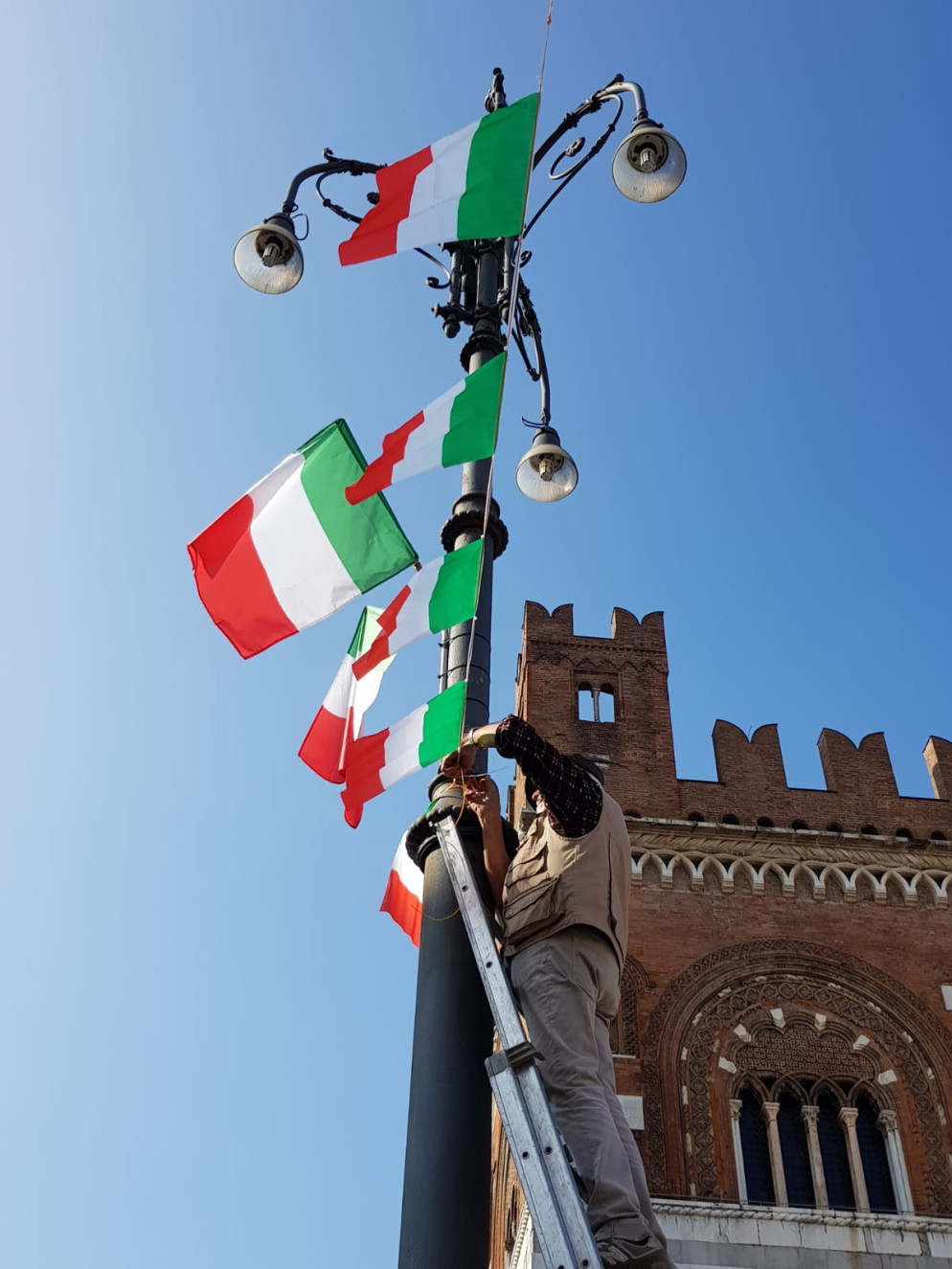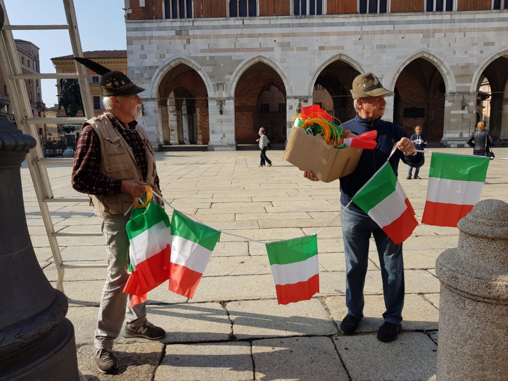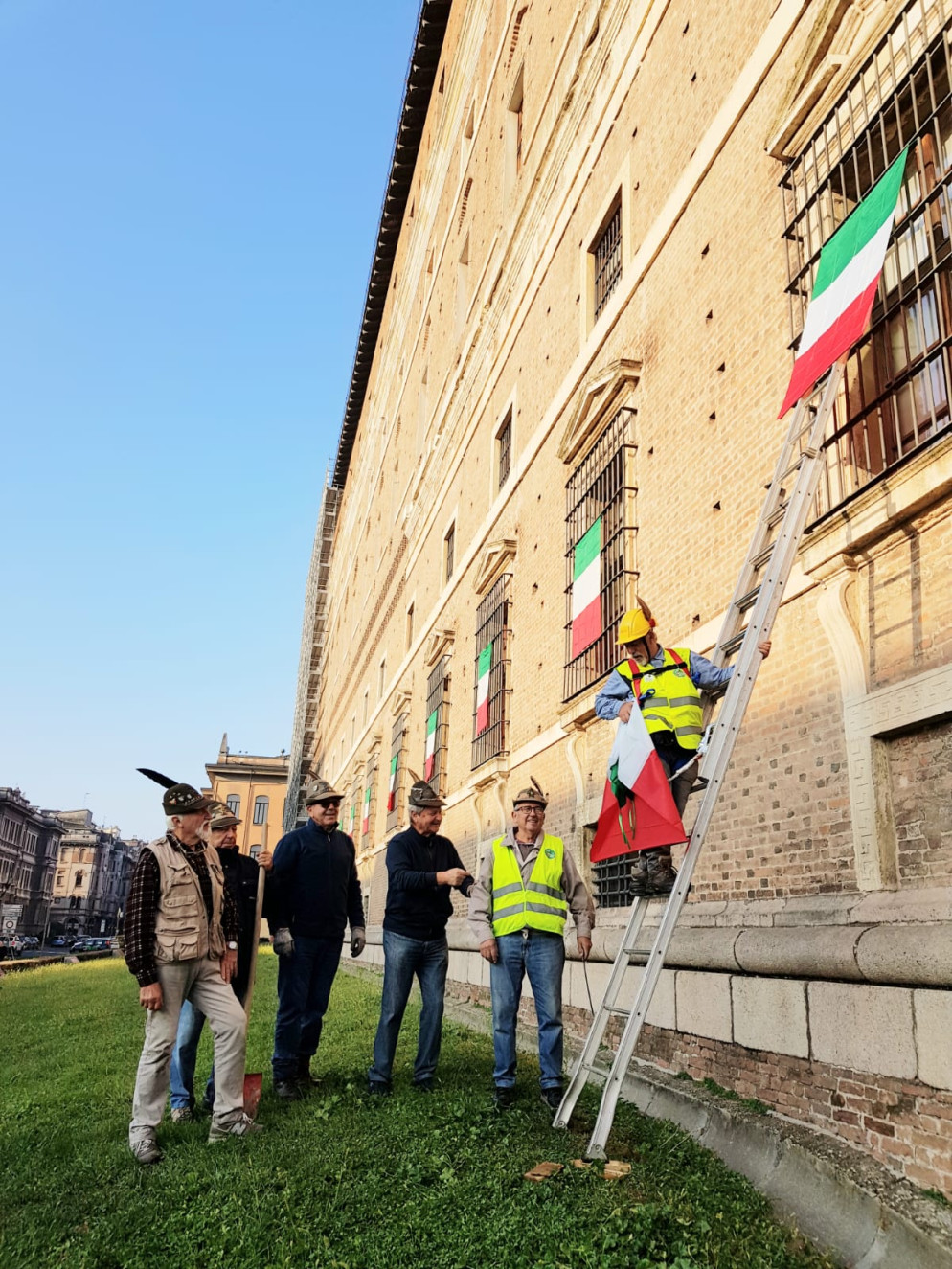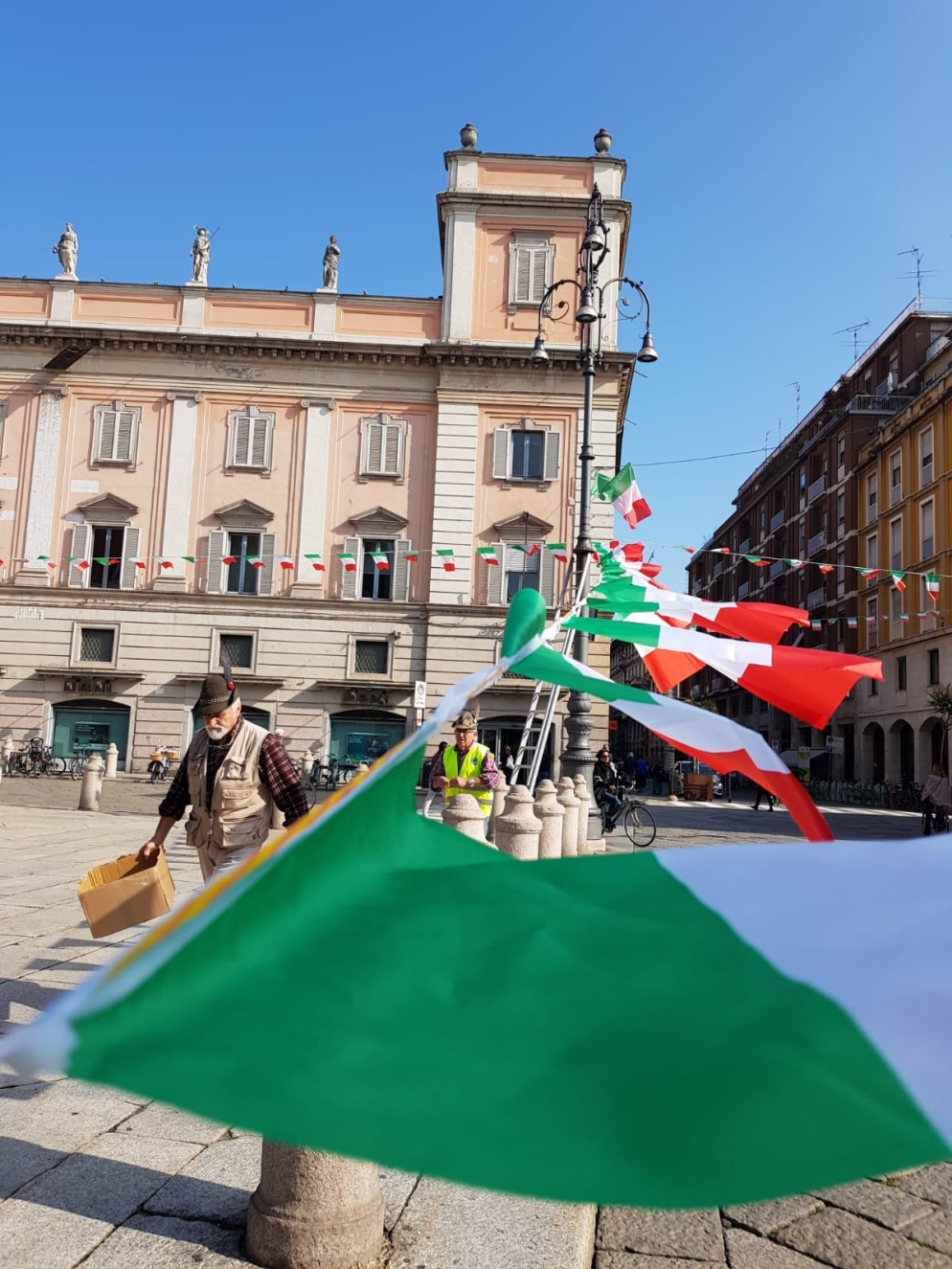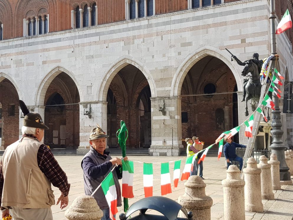 Con scala estensibile e caschetto antinfortunistico (decorato con l’immancabile penna nera), sono state imbandierate piazza Cavalli, le finestre di due piani di Palazzo Farnese, del liceo Gioia, dell’istituto Romagnosi, della scuola Mazzini. Ma anche Porta Borghetto e via Maculani.