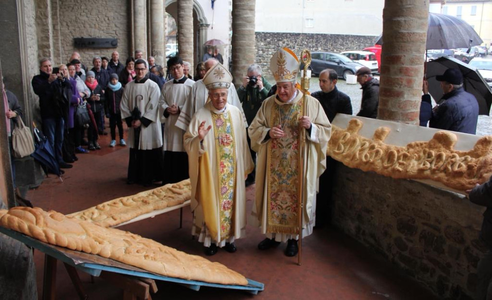 “Il Santo Padre vi invia la benedizione apostolica e vi chiede in cambio di pregare per la sua persona e la missione”, ha sottolineato Tscherrig. “San Colombano ci richiama alla conversione e al distacco dai beni terreni. La sua austerità non è mai fine a se stessa, diventa la necessità di conversione al Vangelo”. Sua eccellenza ha benedetto 150 chili di pane preparato dai panificatori bobbiesi.
