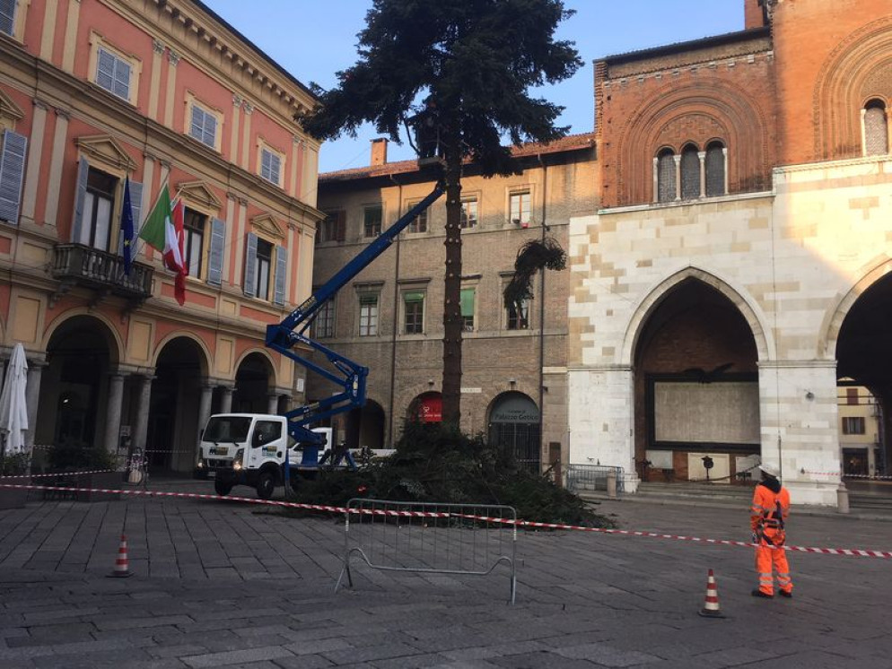 Le festività sono state definitivamente archiviate e stamattina, 13 gennaio, Piacenza ha dovuto salutare l’albero di Natale allestivo davanti a Palazzo Mercanti. Una ditta incaricata ha provveduto a tagliare i rami e a smantellare il pino di 20 metri che ha contribuito, con le sue luci, a valorizzare il cuore della città. L’albero, proveniente da una famiglia di Carpaneto e installato grazie al sostegno di Confindustria, Camera di Commercio e Paver, è finito in discarica.