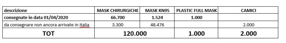 Cordata di imprenditori fa squadra e dona 120mila mascherine e 2mila camici