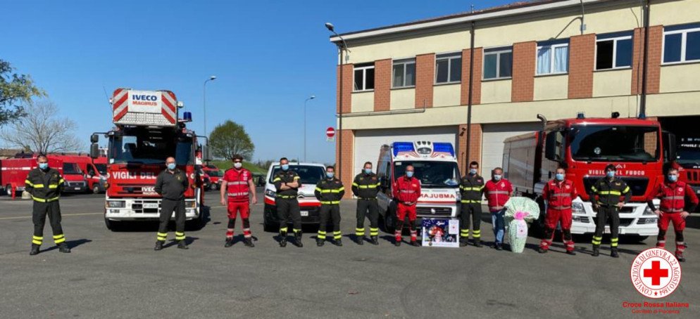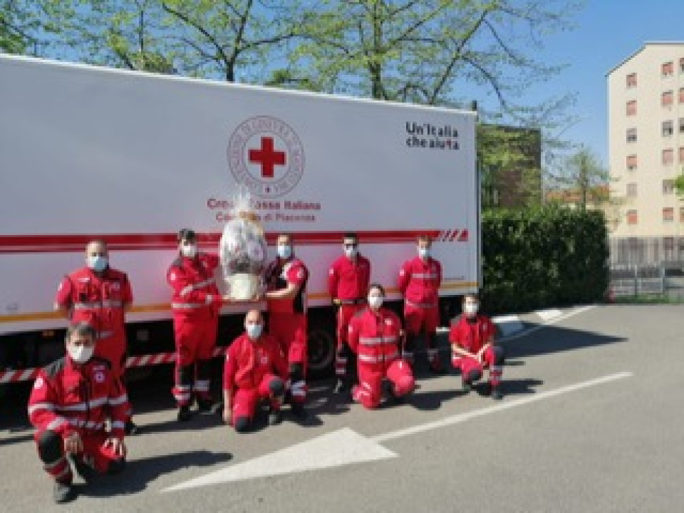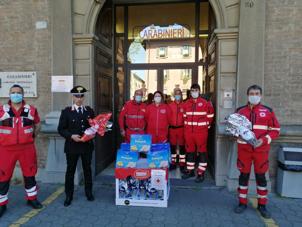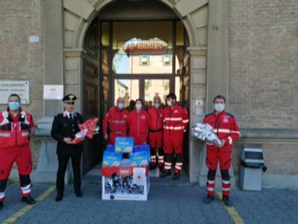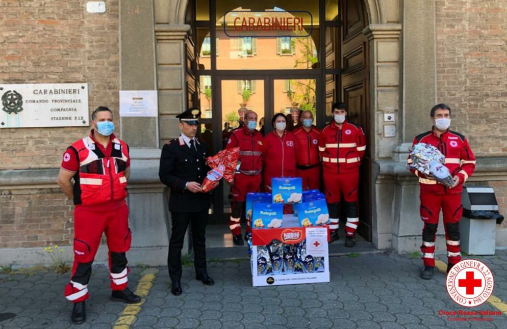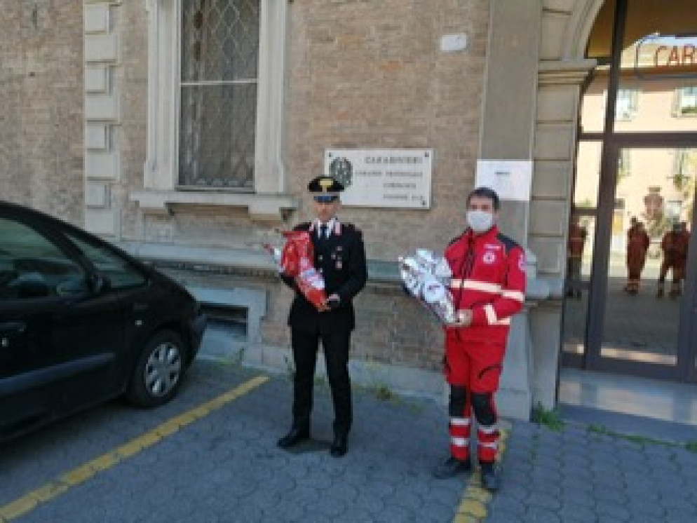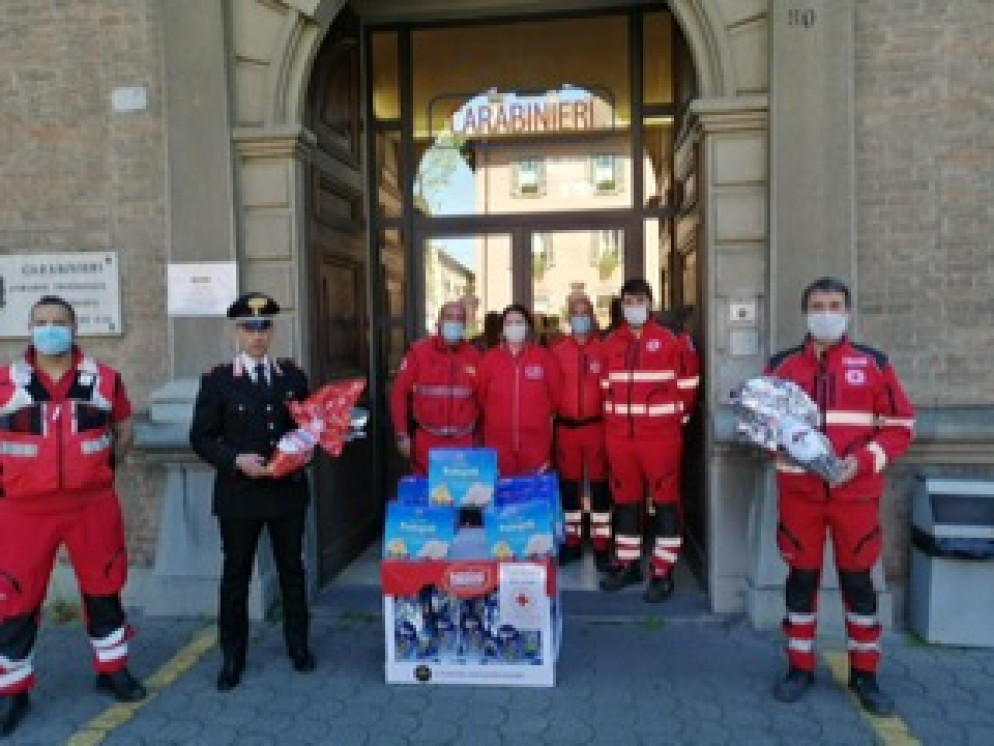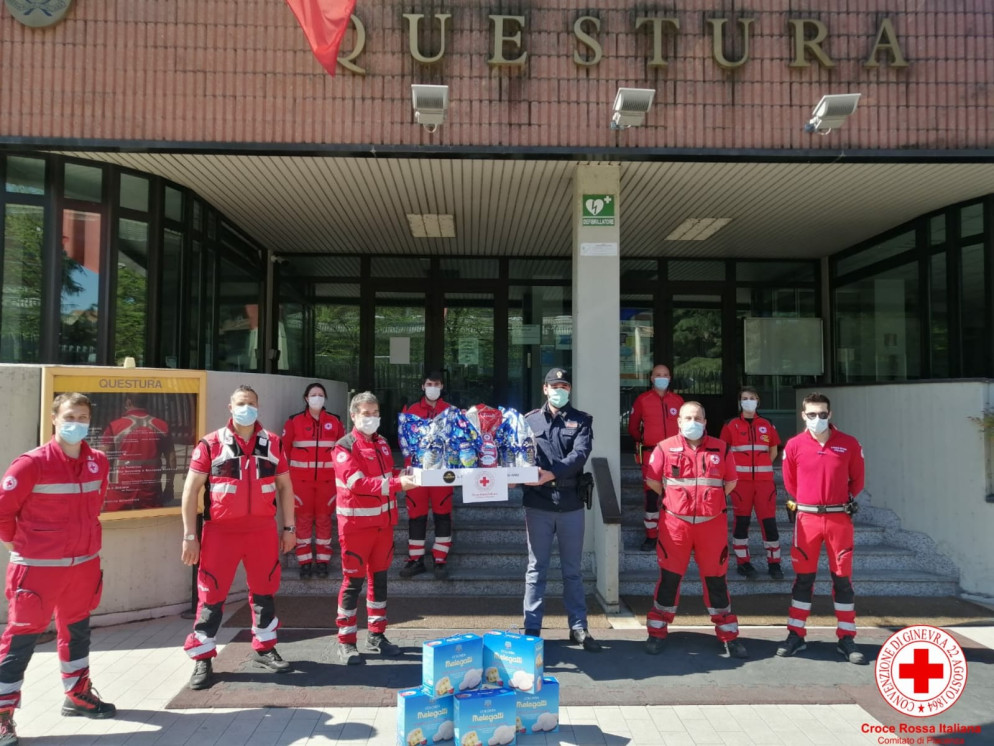 Pasqua al lavoro per tanti, gli uomini della Cri donano uova e colombe alle forze dell'ordine. FOTO