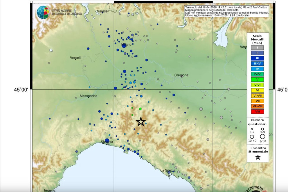 La scossa più forte è stata avvertita fino a Milano, per una serie di concause illustrate dall’ingegner Stramondo: “Innanzitutto una motivazione sociale, perché siamo tutti in quarantena a casa e quindi nelle condizioni migliori per sentirla; poi perché le onde sismiche hanno una direzione privilegiata, e in questo caso era verso nord; poi perché le onde incontrando un substrato di sedimenti (la Pianura Padana) modificano il loro effetto aumentando l’oscillazione”.