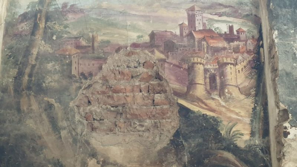 Intanto, proprio nei giorni scorsi, durante i lavori di restauro della chiesa, che dovrebbe aprire il prossimo autunno, (l’intervento ha subito un brusco stop dovuto all’emergenza Coronavirus), è emersa una decorazione in una cappella della navata destra, sotto allo strato di pece che ricopre le pareti dell’ edifico. Si intravede la parte di una città turrita con una cinta muraria, in primo piano la vegetazione e, sullo sfondo, colline che ricordano quelle piacentine. In mezzo purtroppo è rimasto un buco che danneggia l’opera. A portarla alla luce i lavori della Rest di Carlo Loranzi, che ha ottenuto per 20 anni dal Demanio la concessione dell’edificio e il cui obiettivo è trasformare la chiesa, trecentesca, in un auditorium da circa 500 posti. La funzionaria della Soprintendenza Anna Còccioli Mastroviti, stamattina ha effettuato un sopralluogo per verificarne l’origine e la datazione.
