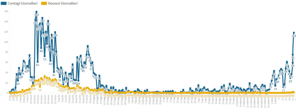 I tamponi effettuati sono stati 15.978, per un totale di 1.449.195. A questi si aggiungono anche 2.855 test sierologici.