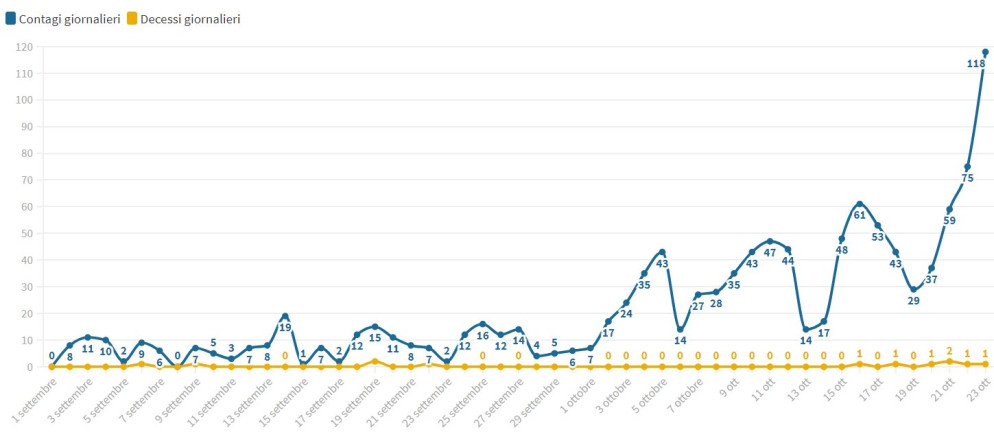 I nuovi contagiati sono stati 118, solo 22 hanno sintomi. Il numero di ricoverati nel reparto di Terapia intensiva resta invariato, a Piacenza sono sette.