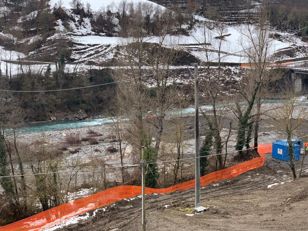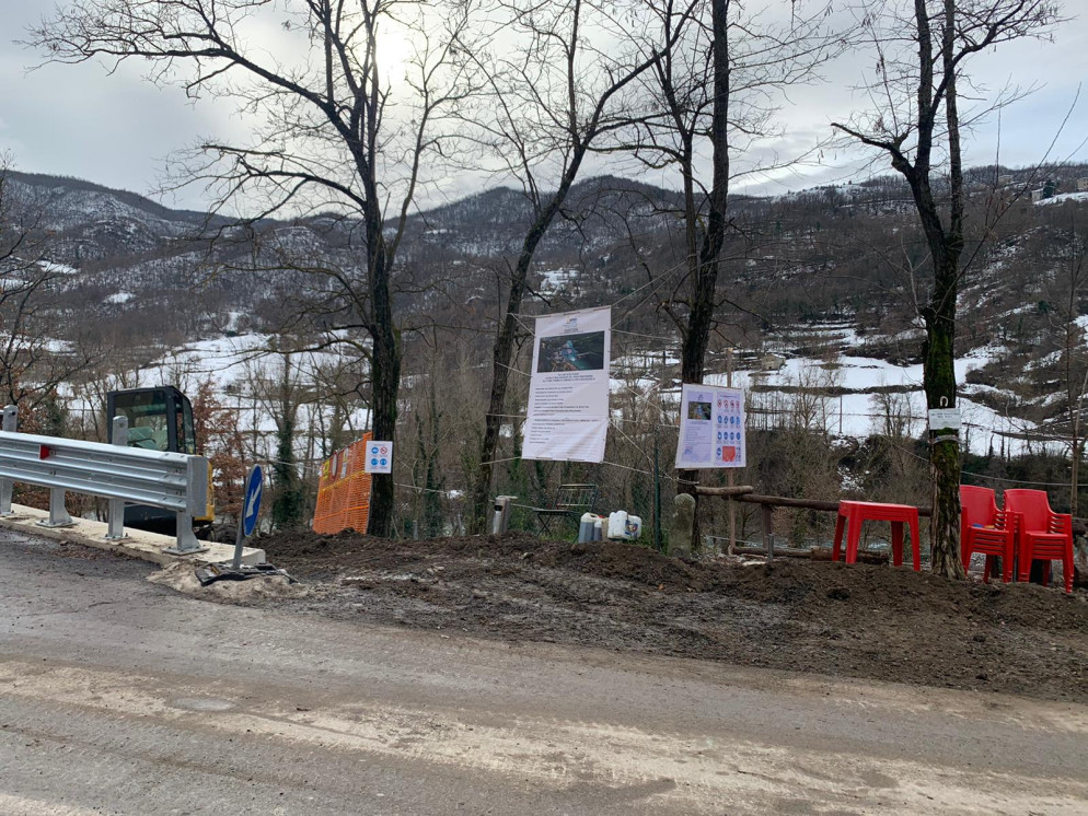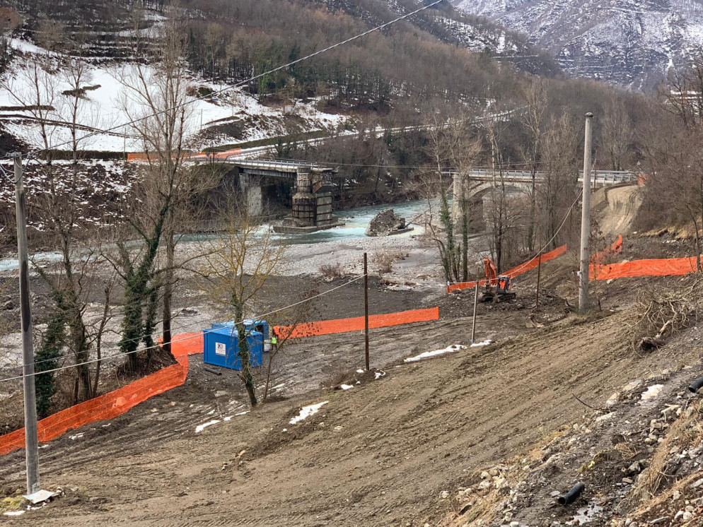 La tregua dalla neve ha rimesso in moto il cantiere per la costruzione del ponte provvisorio Bailey che dovrà collegare i Comuni di Cerignale e Corte Brugnatella, sulla Statale 45,dopo il crollo di ponte Lenzino il 3 ottobre