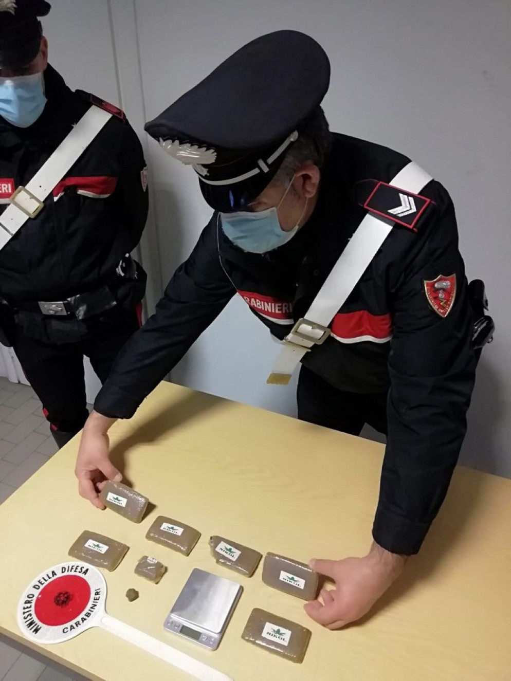 Il 25enne, alla richiesta dei militari se fosse in possesso di sostanze stupefacenti, ha consegnato una piccola dose di hashish. I carabinieri, sempre più insospettiti anche a causa dell’atteggiamento agitato della ragazza accanto a lui, hanno avviato una perquisizione più approfondita. La giovane, infatti, nascondeva sotto la giaccia un involucro contenente cinque panetti di hashish per oltre mezzo chilo.