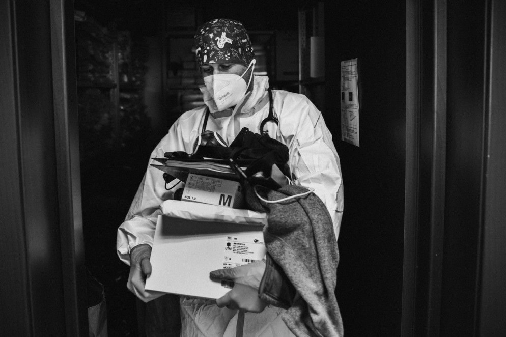 Negli scatti, che Libertà pubblica oggi in anteprima ma che saranno poi visibili anche sul sito www.sergioferri.com, Matteo c’è e insieme a lui ci sono anche Florenzo Moccia e Mattia Carelli, colleghi medici che nei mesi scorsi operavano nelle Usca.