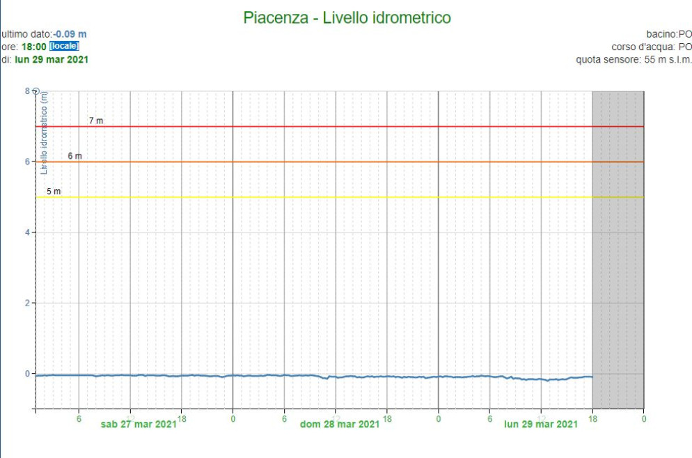 Livelli idrometrici con punte inferiori di portata fino al 45% rispetto alla media e una situazione complessiva che attesta il fiume Po, in questi primi giorni di primavera, a quote del tutto simili a quelle riscontrabili alla fine del mese di agosto. Le temperature e la persistente assenza di precipitazioni consistenti disegnano un quadro preoccupante soprattutto se si considera che anche il grosso del prelievo dell’irrigazione a beneficio delle colture della Pianura Padana è soltanto all’inizio della stagione. A Piacenza il livello del Po è di poco sotto lo zero idrometrico, a -0,08 metri.