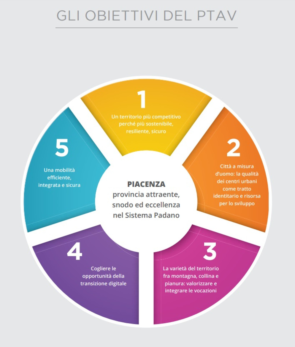 Il direttore generale della Provincia di Piacenza Vittorio Silva, responsabile dell’Ufficio di Piano, ha poi enucleato, con ampia documentazione tecnica, gli obiettivi del PTAV: “Il documento scommette su Piacenza come provincia inserita nel sistema Padano che punta a proporsi quale realtà attraente, valorizzando il proprio ruolo di territorio di snodo, con l’ambizione di raggiungere l’eccellenza. In questo senso vanno i cinque obiettivi del Piano: rendere il territorio più competitivo perché più sostenibile, resiliente e sicuro; disporre di una città a misura d’uomo, partendo dalla qualità dei centri urbani come tratto identitario e risorsa per lo sviluppo; puntare sulla varietà del territorio fra montagna, collina e pianura, valorizzando e integrando le diverse vocazioni; cogliere le opportunità della transizione digitale; dirigersi verso una mobilità efficiente, integrata e sicura”.