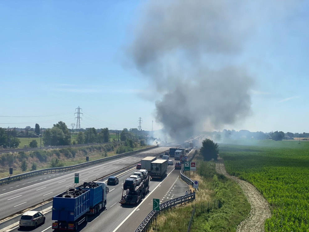 Entrambe le corsie di marcia sono state chiuse, a causa del denso fumo nero che si è presto propagato impedendo la visibilità. Code chilometriche si sono formate sulla tratta. Diversi camion di vigili del fuoco si sono recati sul posto.