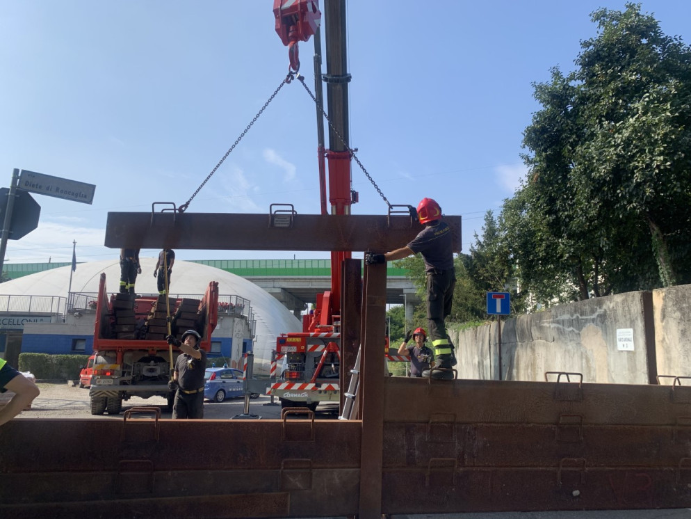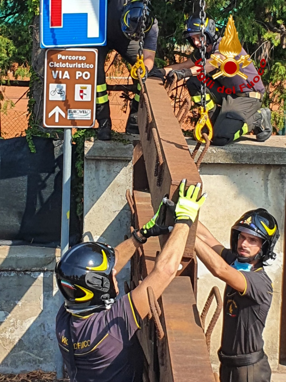 Lastre di metallo posizionate ai varchi presenti sull’argine del Po: i “panconi” proteggono la città da una piena straordinaria del Grande Fiume. Per testare le tempistiche di posa e il funzionamento della macchina dell’emergenza è stata organizzata un’esercitazione che, nella giornata di sabato 18 settembre, ha coinvolto personale di Aipo, Genio Pontieri, Vigili del fuoco, Comune, Agenzia regionale di protezione civile, volontariato provinciale, Consorzio di bonifica con il coordinamento dalla prefettura di Piacenza. I “panconi” metallici vengono posizionati in caso di piena straordinaria quando il Po supera otto metri e mezzo di altezza.