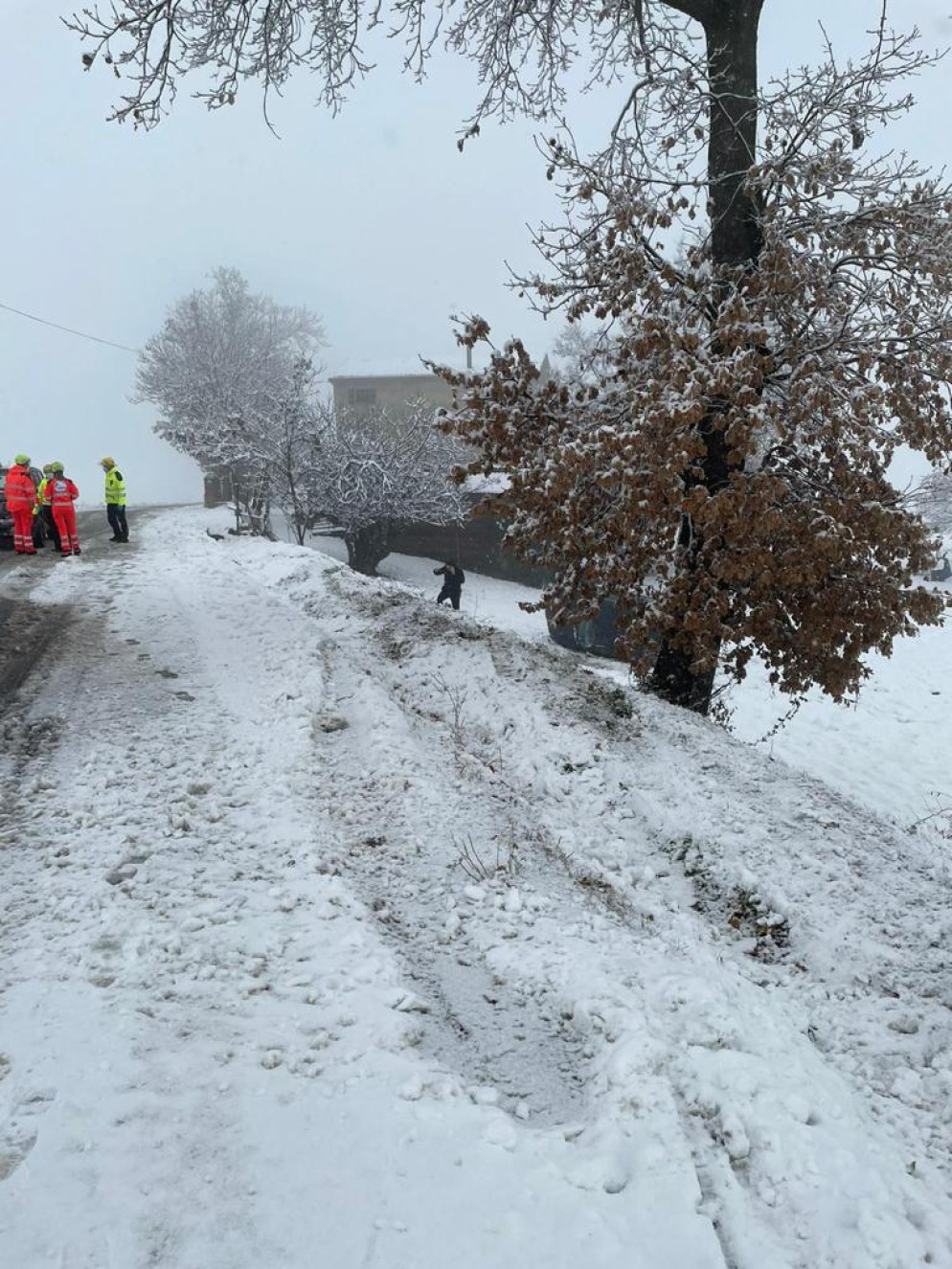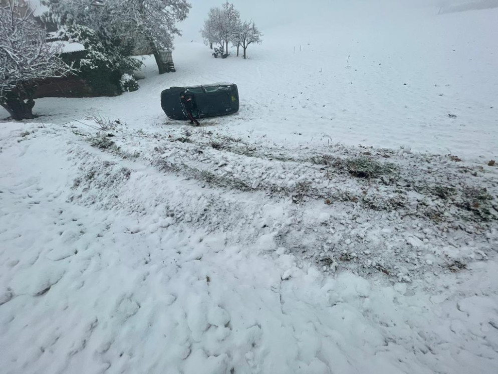 In un altro intervento i vigili del fuoco hanno dovuto liberare con un verricello un camion rimasto incastrato in mezzo alla neve nel parcheggio di un supermercato.